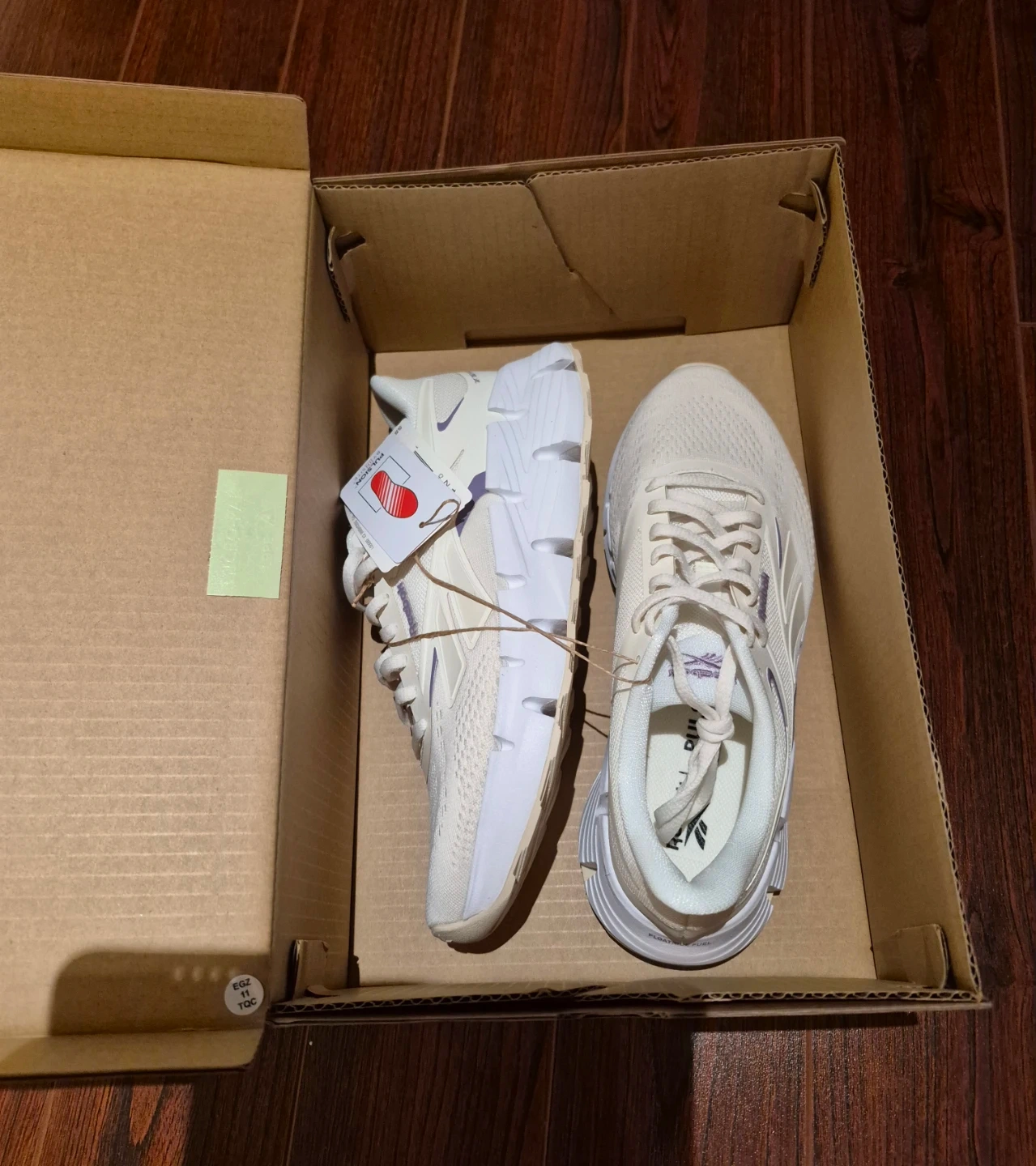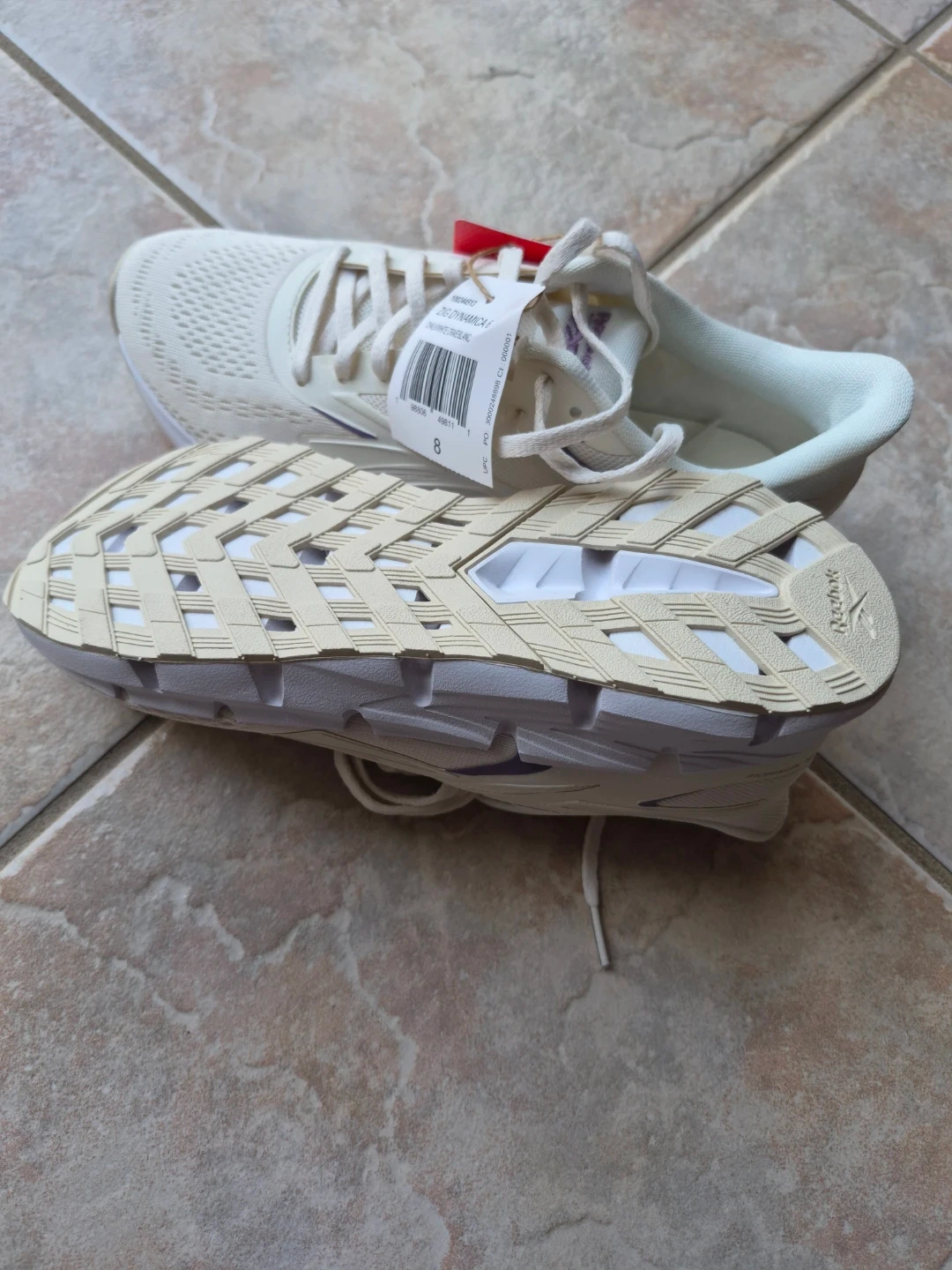Reebok Women's Zig Dynamica 6 running shoes in cream. SIZE 8, Features a breathable mesh upper and comfortable footbed. Includes original box.