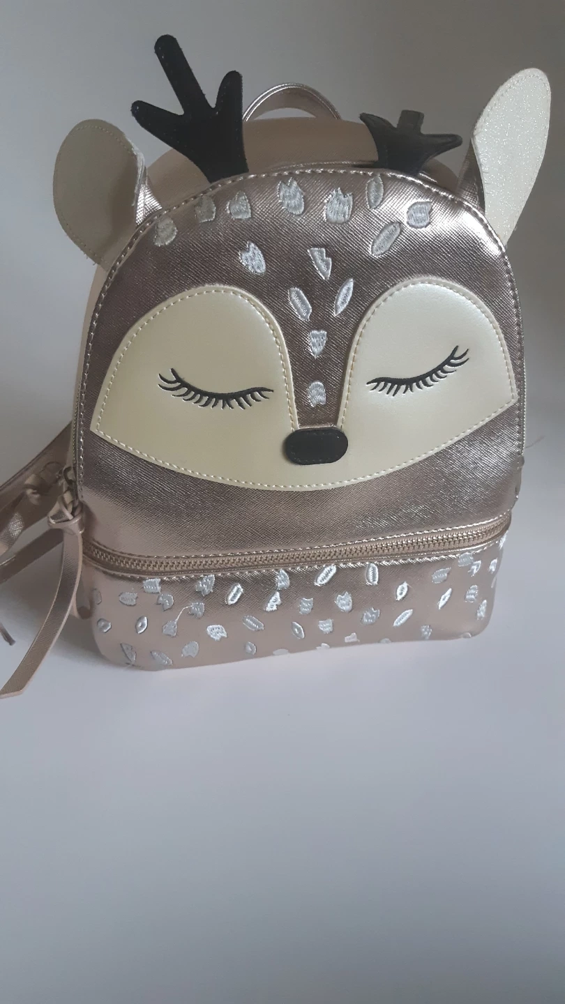 Check out this adorable gold deer backpack from Kidsboreky! It's in great condition and perfect for your little one. The backpack features a cute deer face design with ears and antlers. It's a stylish and fun way for kids to carry their belongings