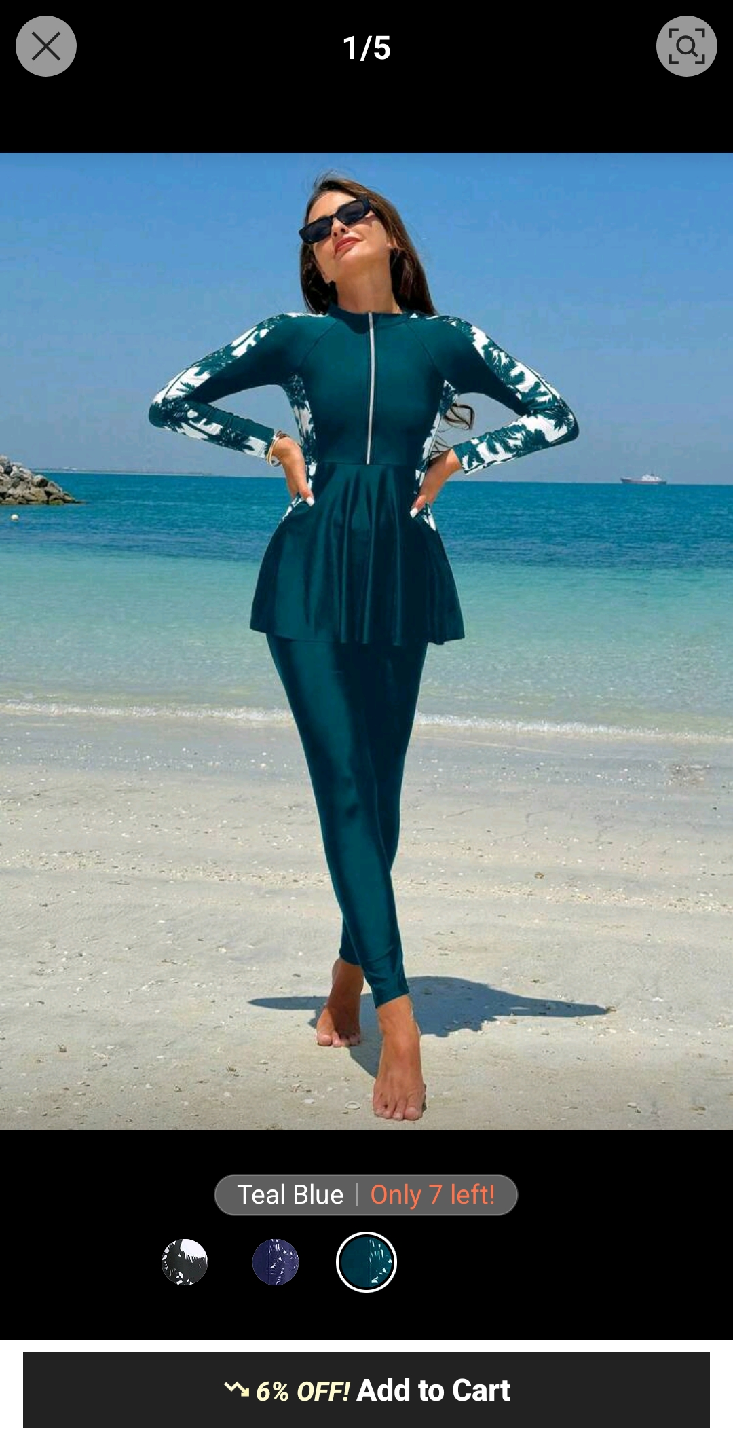 !NEW! Never worn, cos came in wrong size. This swimsuit features a stylish and modest design in a beautiful teal blue colour. Perfect for swimming and other water activities, it offers full coverage while maintaining a fashionable look. If u have any questions - message me