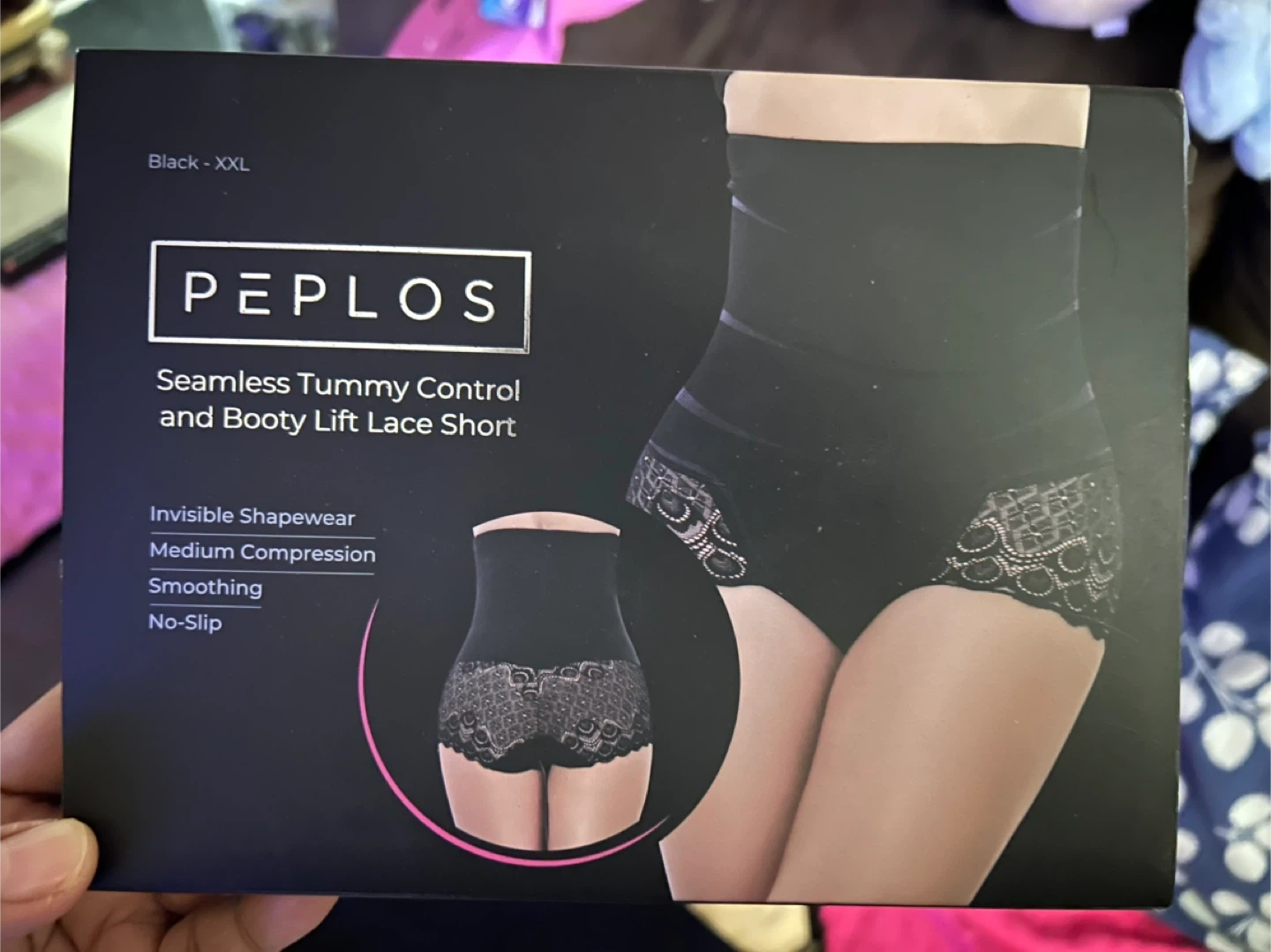 Selling a pair of Peplos Seamless Tummy Control and Booty Lift Lace Shorts in black, size XXL! These shorts provide medium compression on the tummy and waist and effectively help to flatten and lift buttocks. They feature lace trim and a high waisted design with two steel bones and a stretchy waistband. Made of 85% nylon and 15% spandex, these shorts are more comfortable than a corset and provide no-slip coverage