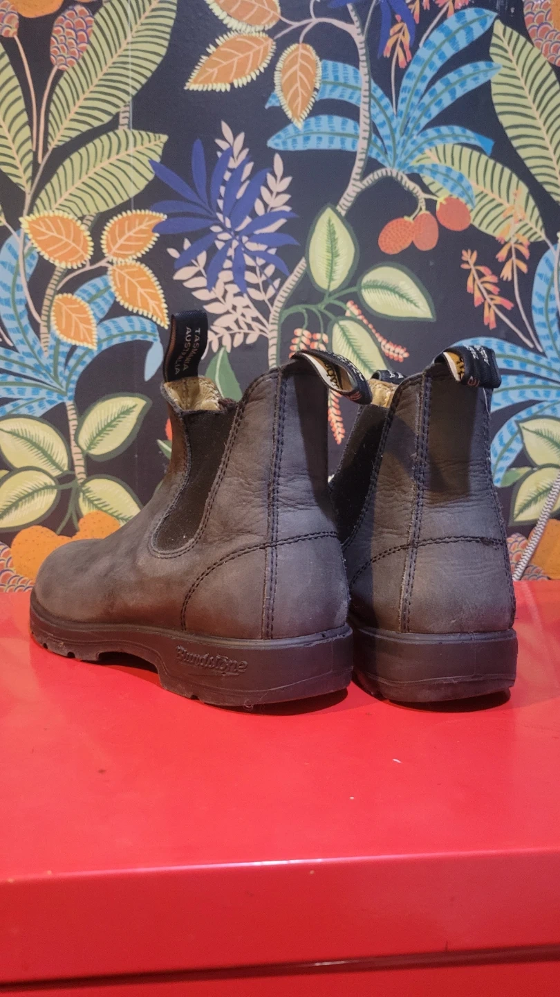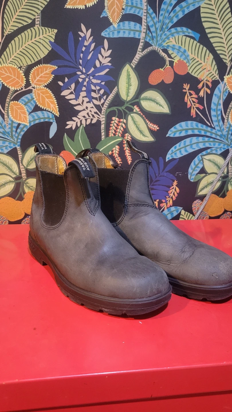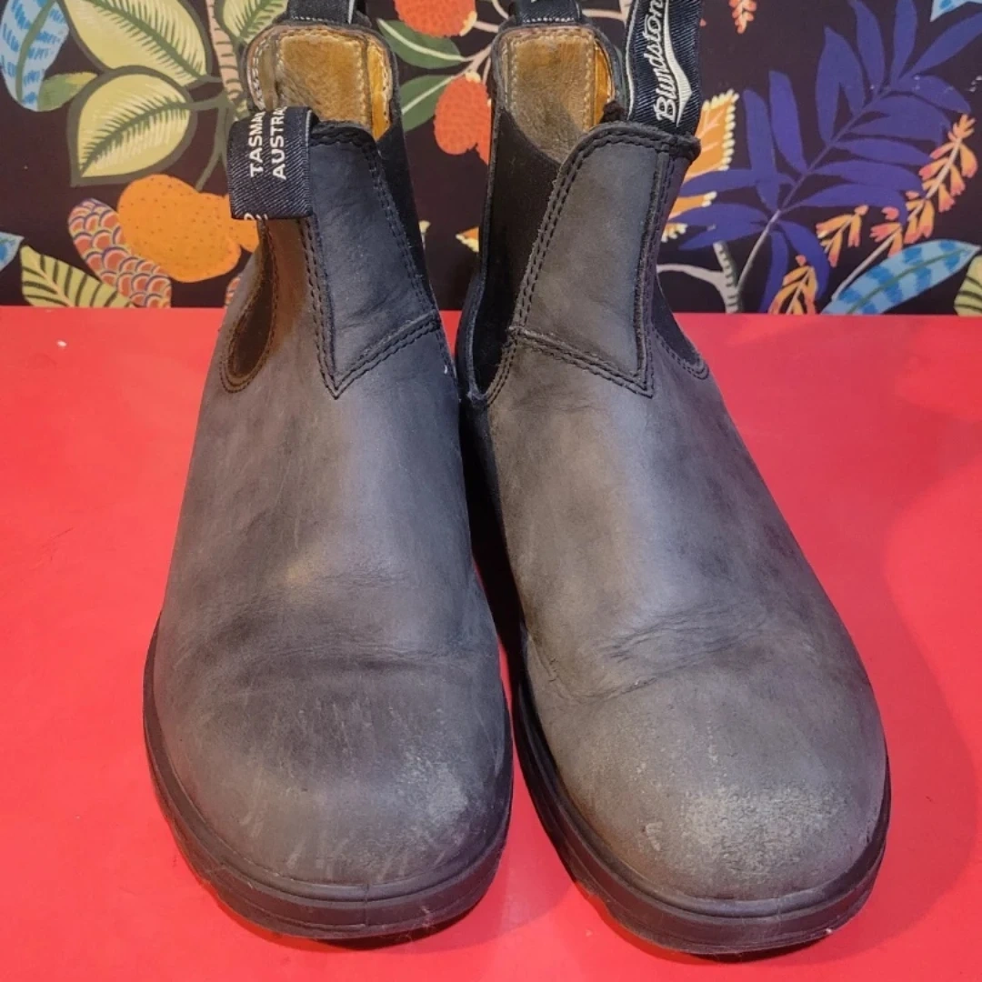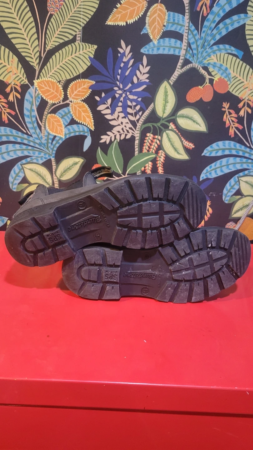 Blundstone Lug Sole #2238 boots in Rustic Black raise the bar for comfort and good value. Blundstone all-day, pull-on, kick-off comfort, stepped up a notch. No insole as I use orthotics. Used for one winter and has scratches on the front. Ask for more pictures if you are interested.