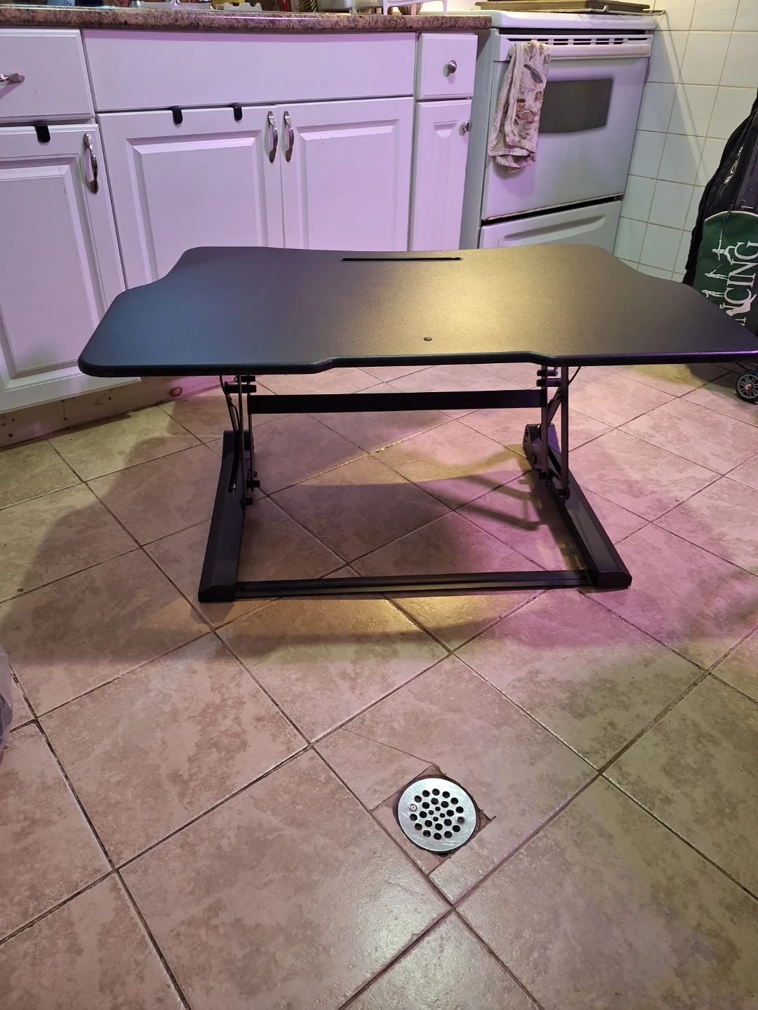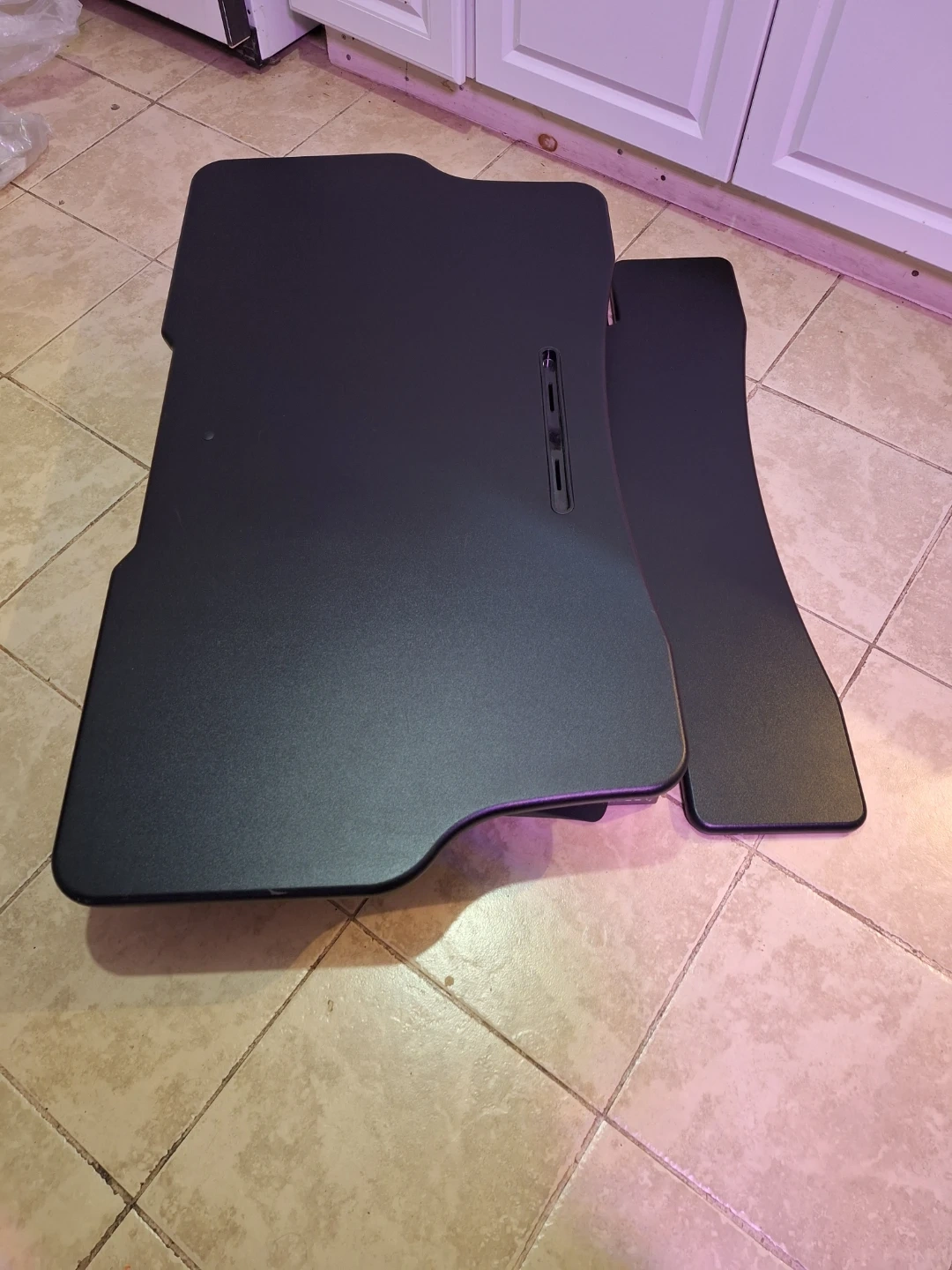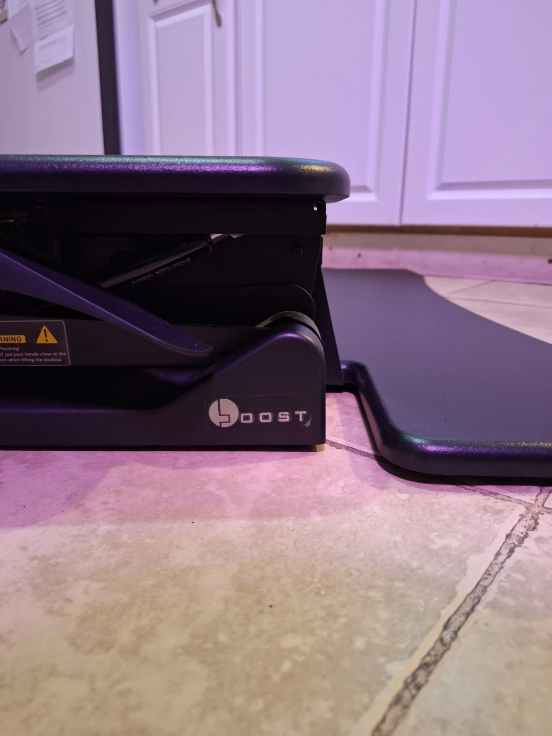 Boost Converter for a desk top. This thing is huge with lots of surface area, but can fold up to stow away if needed. The mechanism for raising and lowering is pneumatic, so there's no need to plug it in. The top has a couple of light scuff marks but no scratches.