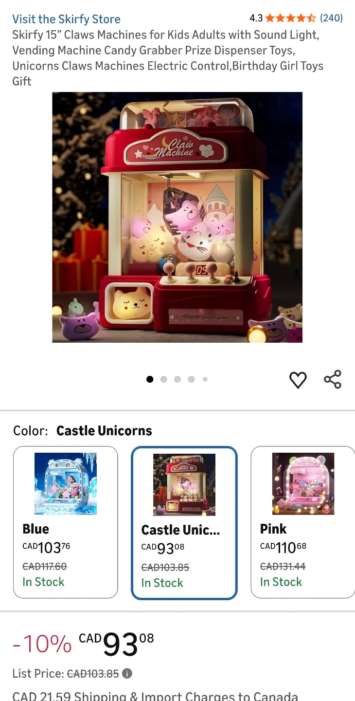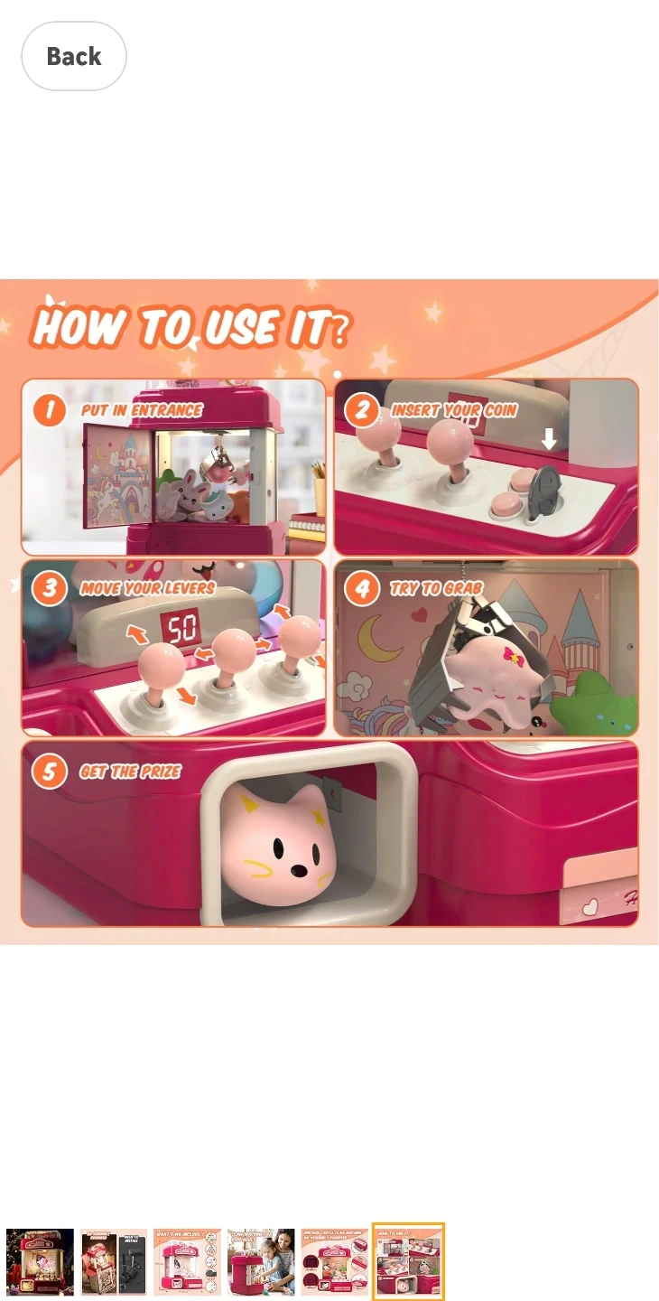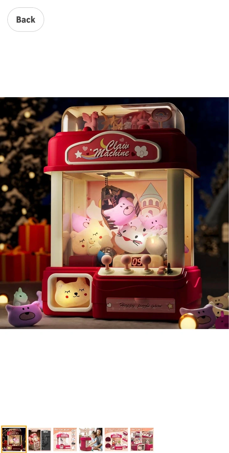 【Imaginative Play】The Skirfy toy claws machines is designed to foster creativity and enhance hand-eye coordination. This interactive playset features three joysticks that allow players to control the gripper's movements in all directions (forward, backward, left, right, up, and down) to grab or release objects. With its captivating music, sound effects, and vibrant lights, this claw machine creates an authentic carnival atmosphere. It's the perfect toys for girl. Wonderful Christmas girl gift.