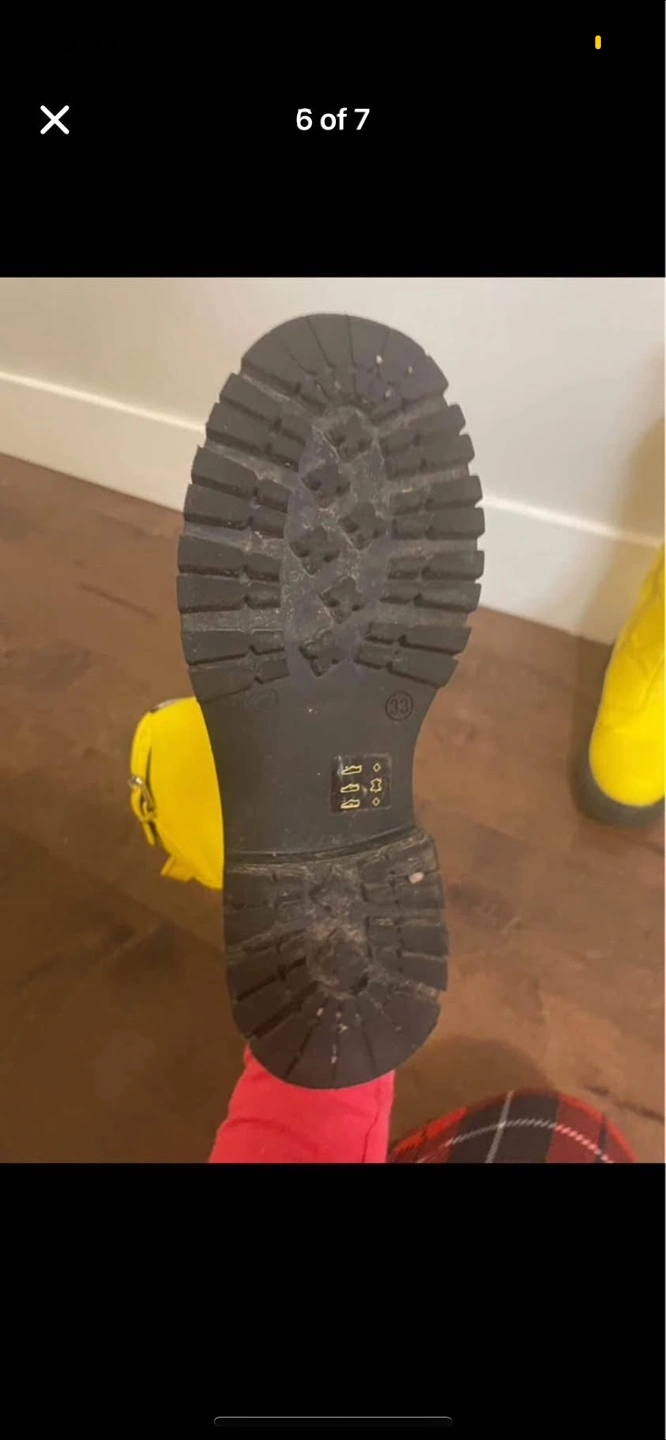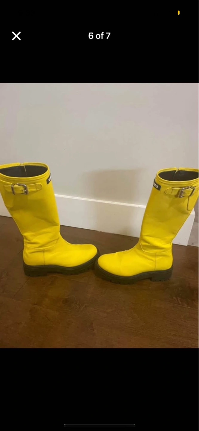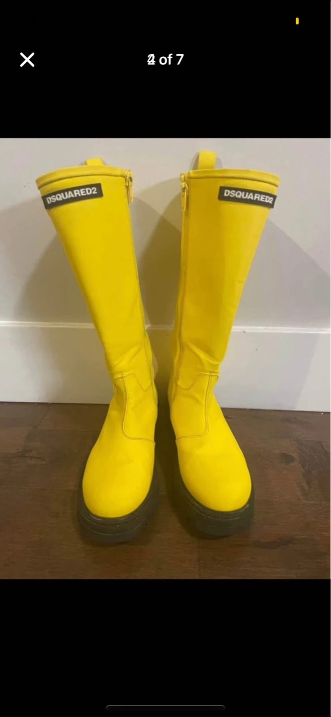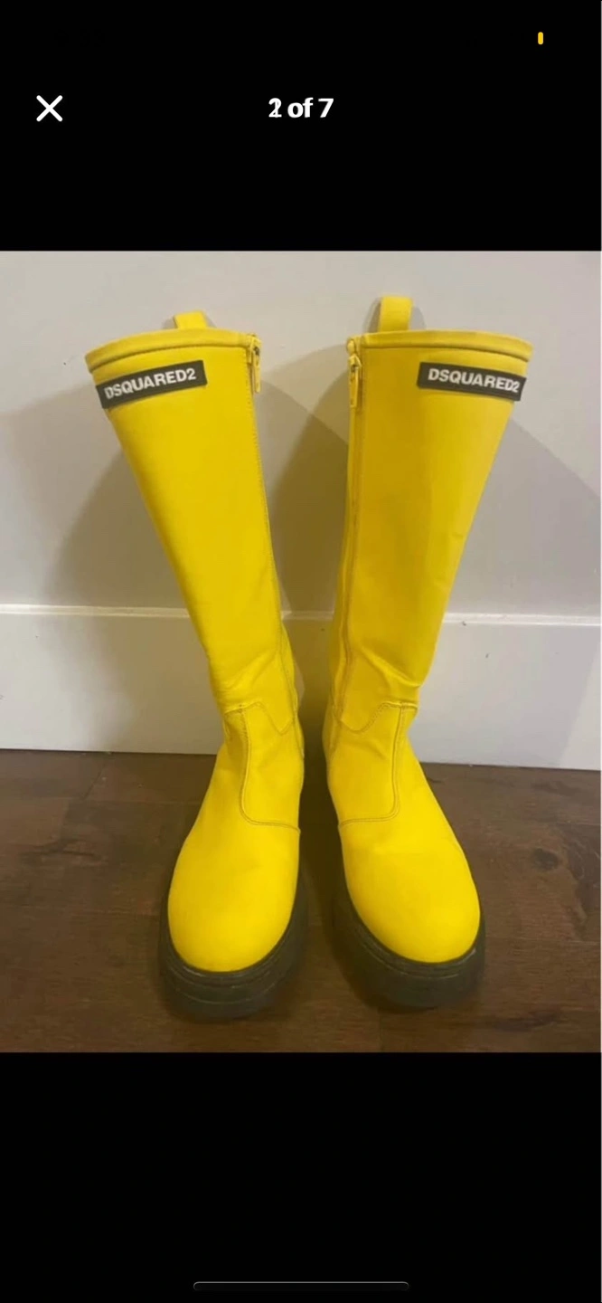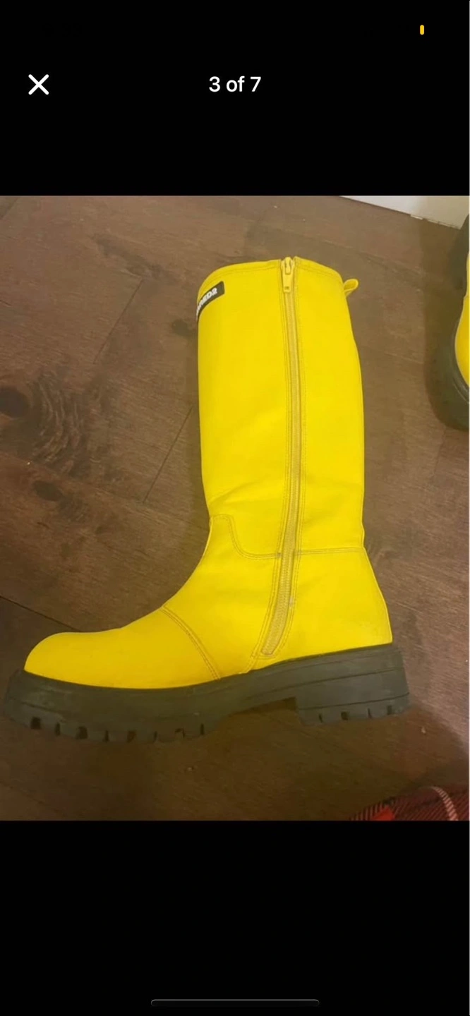 Bright yellow knee-high boots. Side zipper closure. Chunky platform sole. Excellent condition.
