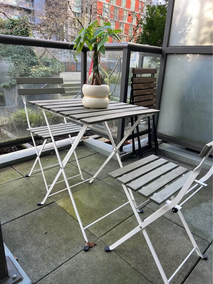 Buy & SellIKEA TÄRNÖ Bistro SetIKEA TÄRNÖ Bistro Set$65Foldable, durable, with a mix of natural acacia hardwood and powder-coated steel. Perfect size for the balcony or a cozy corner of the deck.WHERE TO MEETCheck LocationView MapSELLERverifiedPrateekDowntown650 reviews0 chats·0 favorites·8 viewsSEND CHAT TO SELLERHi Prateek! I’m interested in your listing.Hi Prateek! I’m interested in your listing.Get the Karrot app to chatSign In to chat
