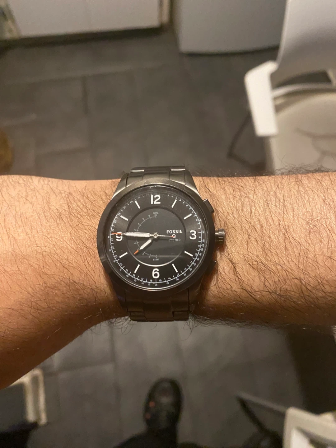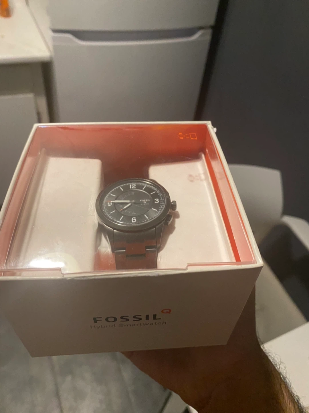 Fossil Hybrid Smartwatch Activist Smoke. This watch has a stainless steel band. It comes with extra links and the original box.