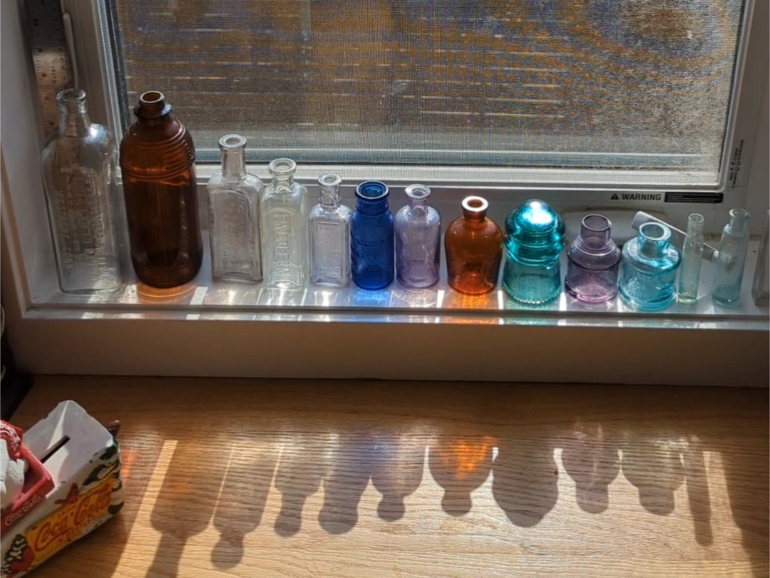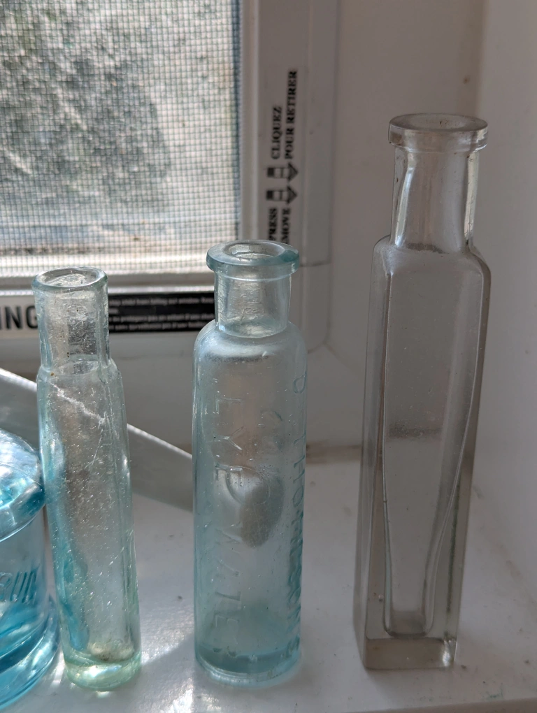 Selling a collection of antique glass bottles. They come in various shapes, sizes, and colours. The tallest is 8 inches tall. I have had these a long time. Some I dug up myself. Zoom into the pictures to see all the details. Some are really old.
