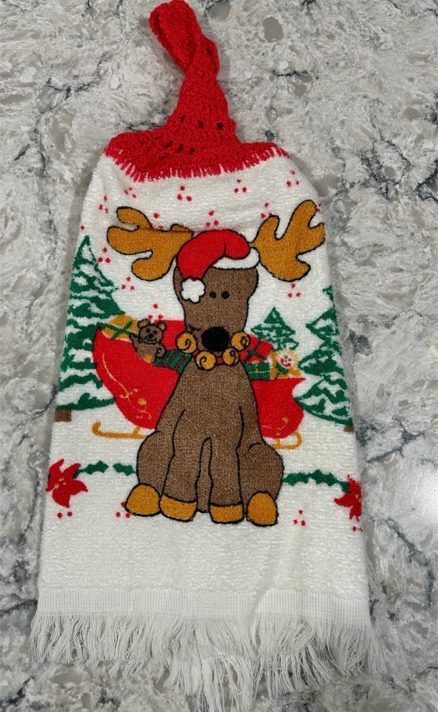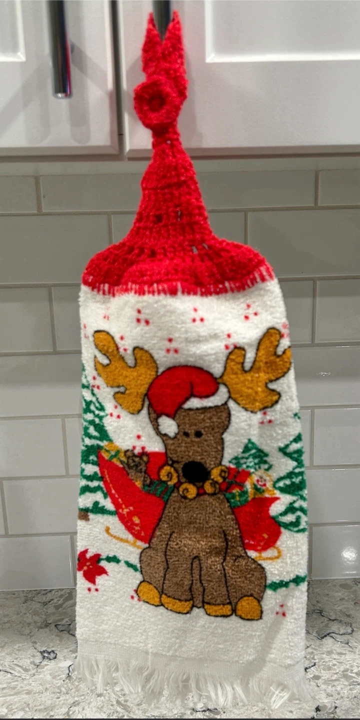 Christmas Hanging Kitchen Towel with Reindeer Design