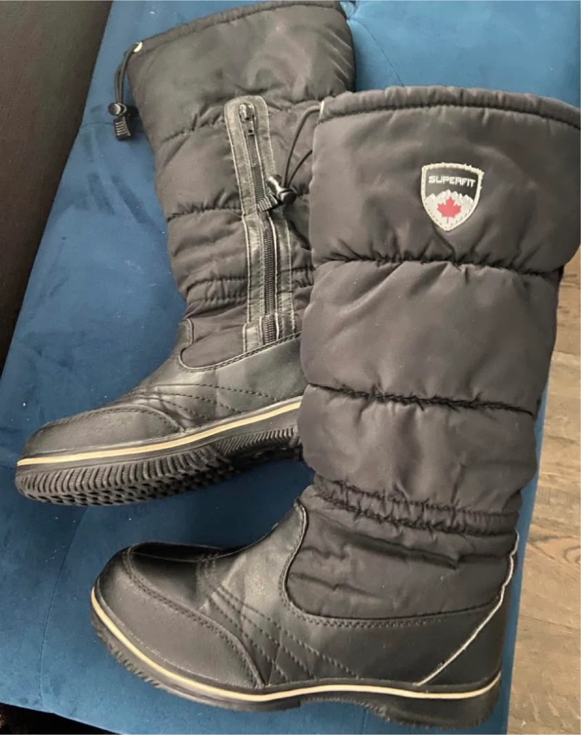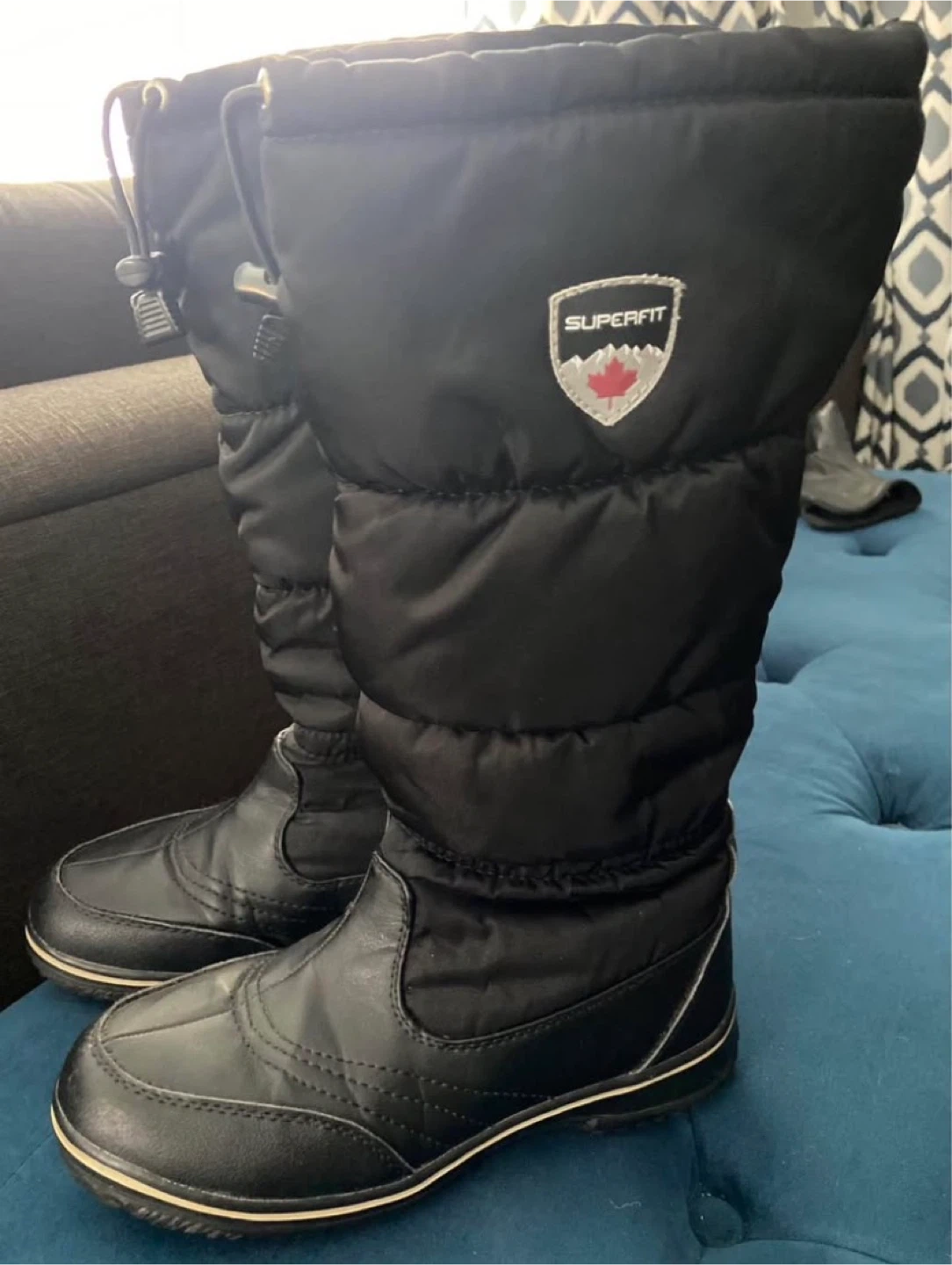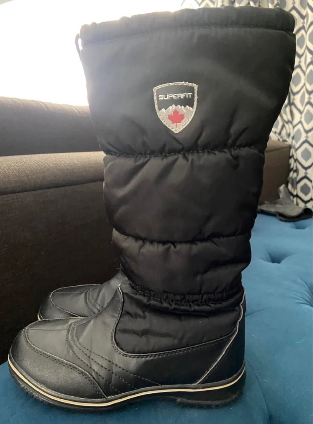 Superfit Canada black puffer boots in a US size 8. These boots feature a waterproof upper and a warm lining for cold weather