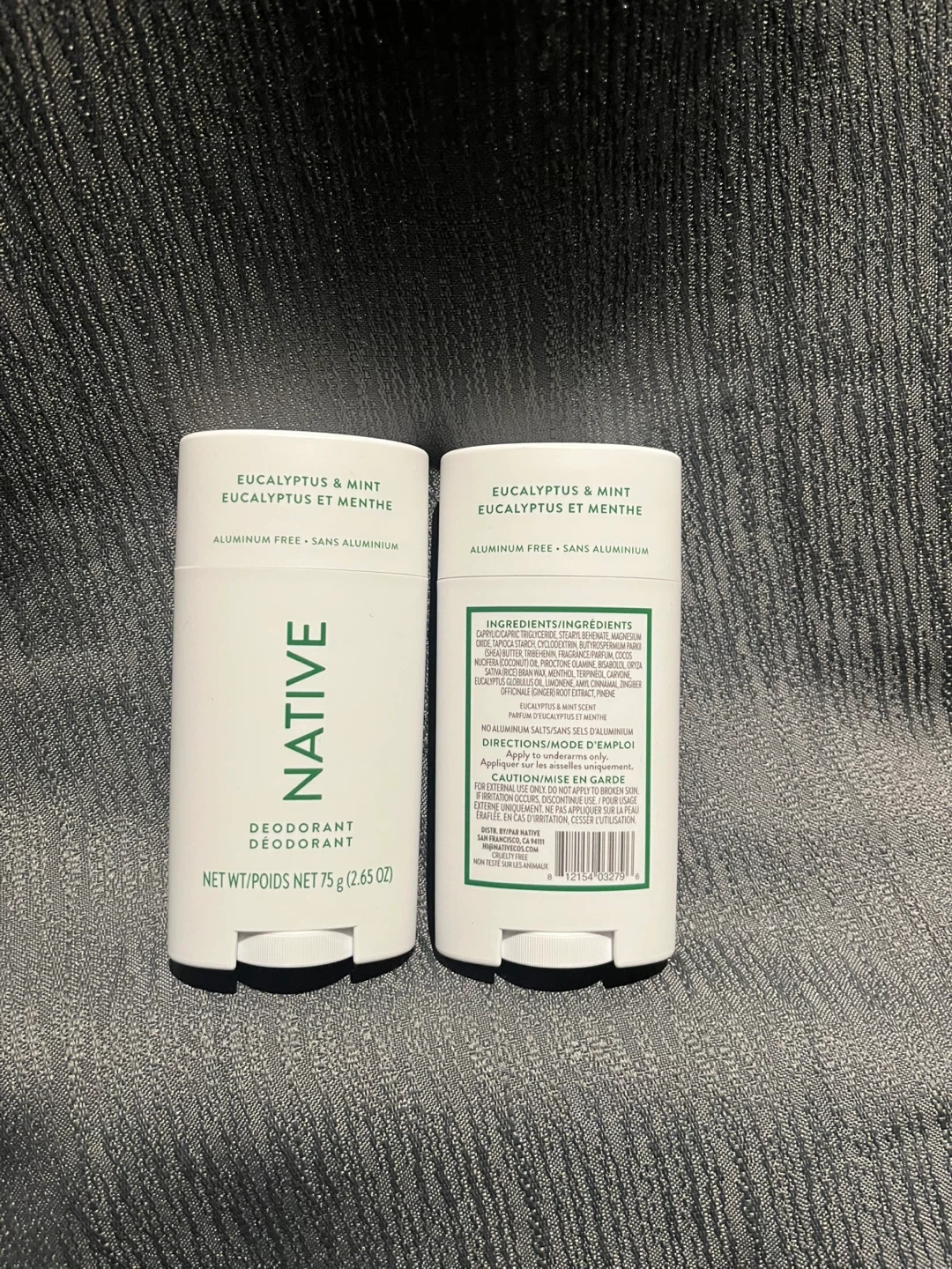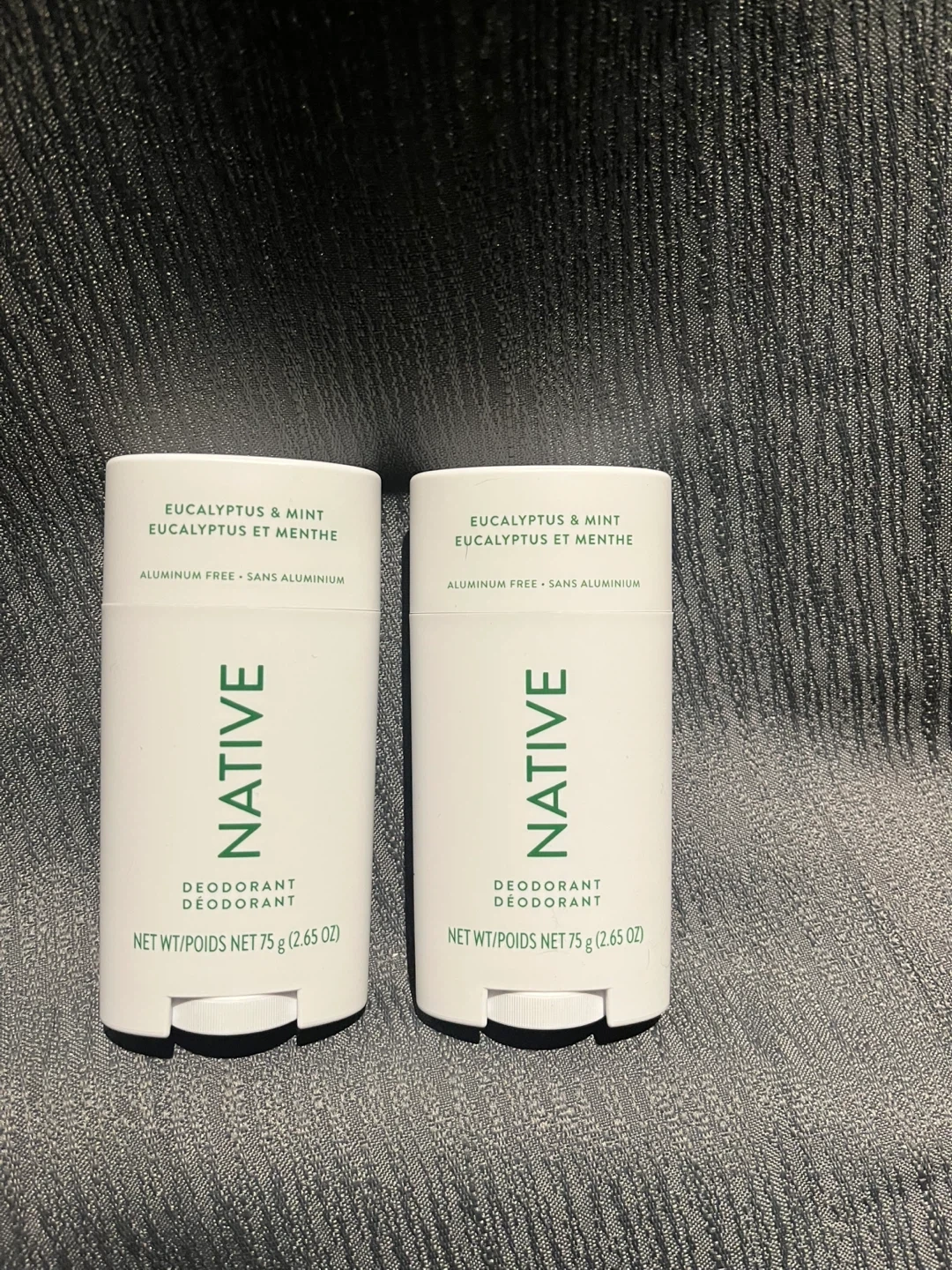 This listing is for two Native Deodorant sticks in the Eucalyptus & Mint scent. It's aluminum free and contains 75g (2.65 oz) per stick. These are great for everyday use, offering a fresh scent without aluminum.