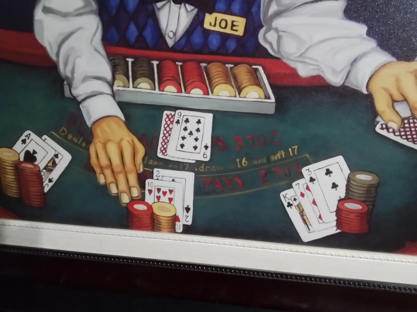Vintage Original Casino Blackjack Dealer Painting by Rafuse
