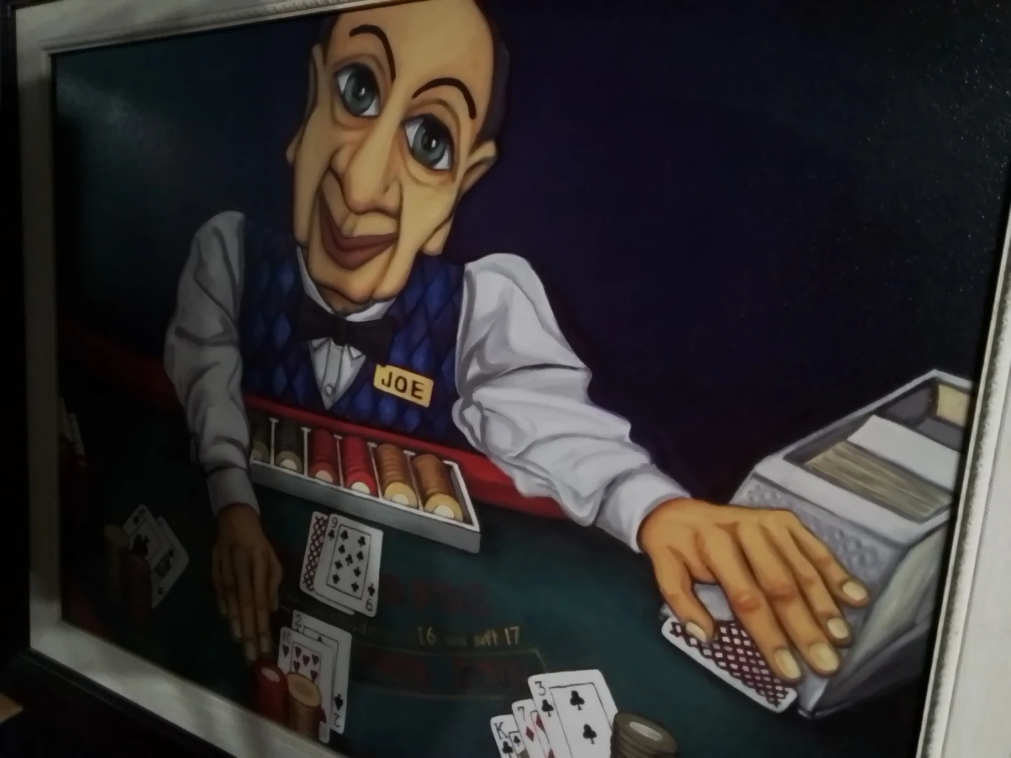Vintage Original Casino Blackjack Dealer Painting by Rafuse