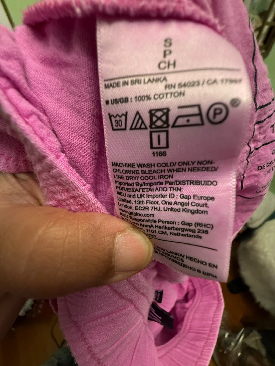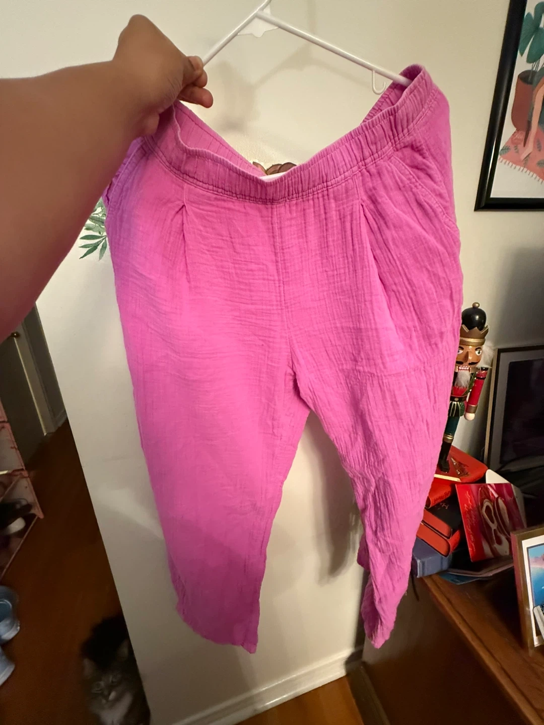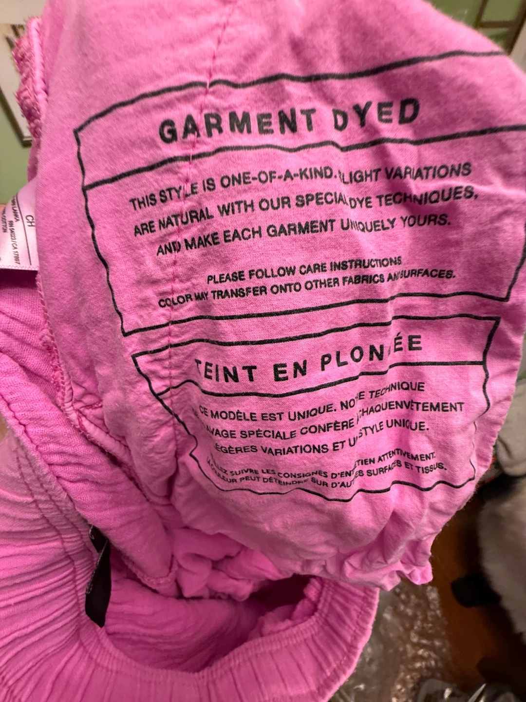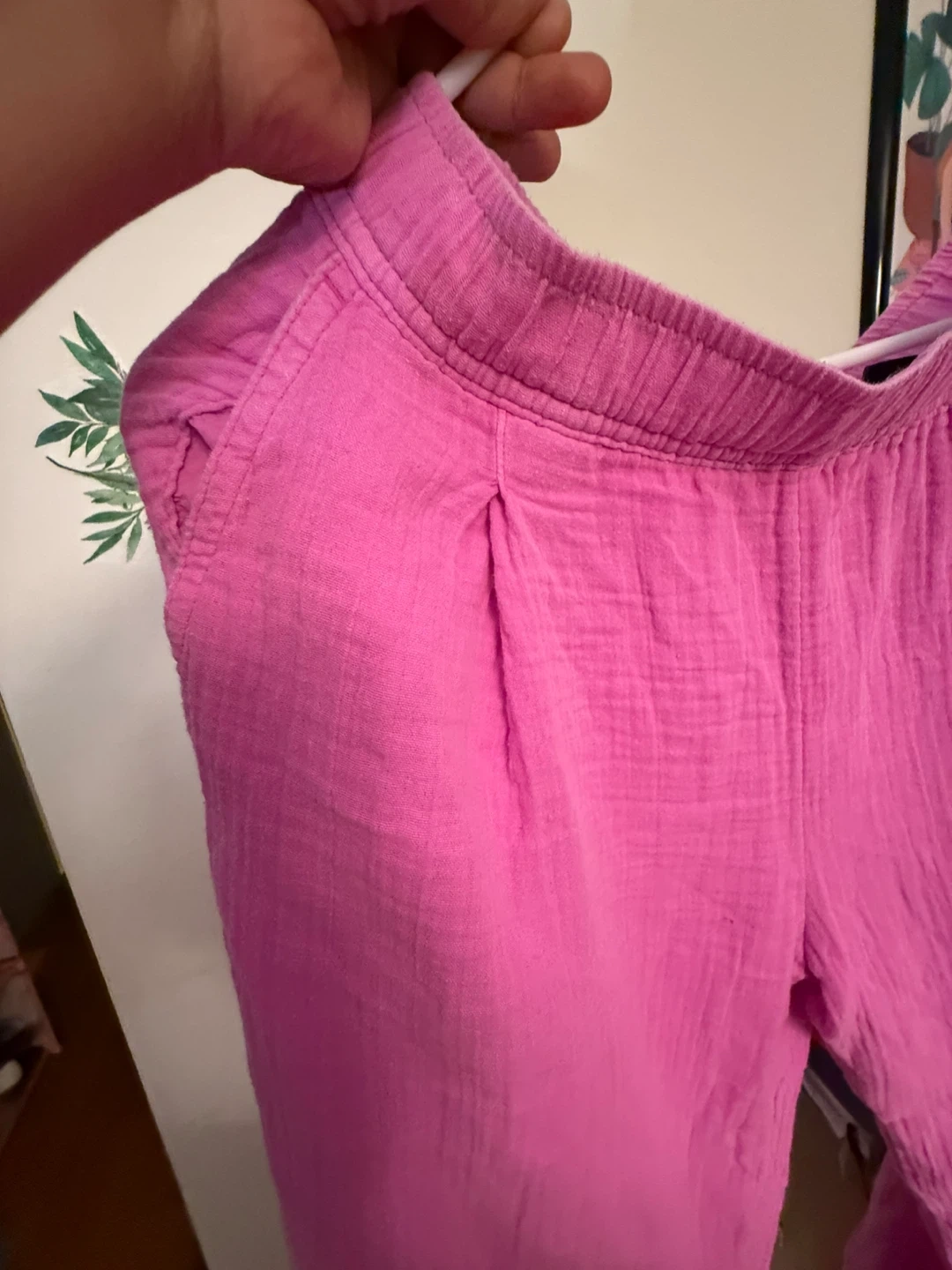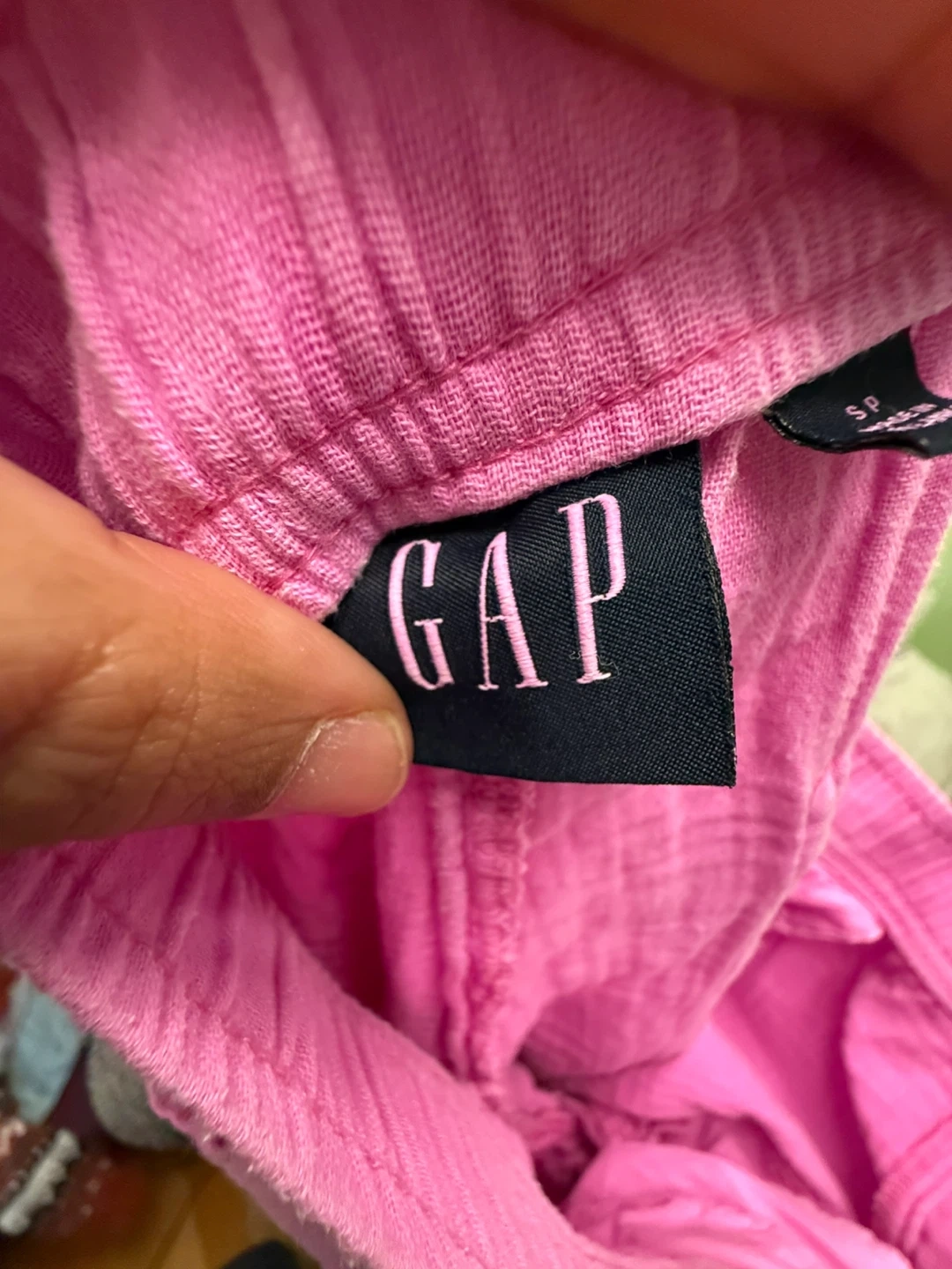 These are a super comfy pair of Gap pants! They are a size small and made of 100% cotton. The garment dyed style means each pair is unique, with slight variations in colour. They're in great shape and ready for a new home