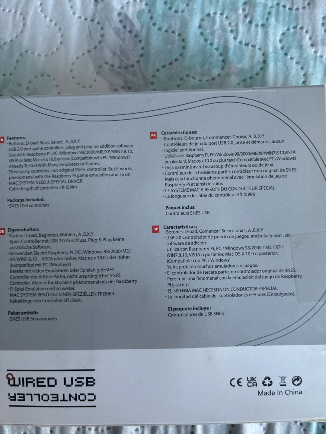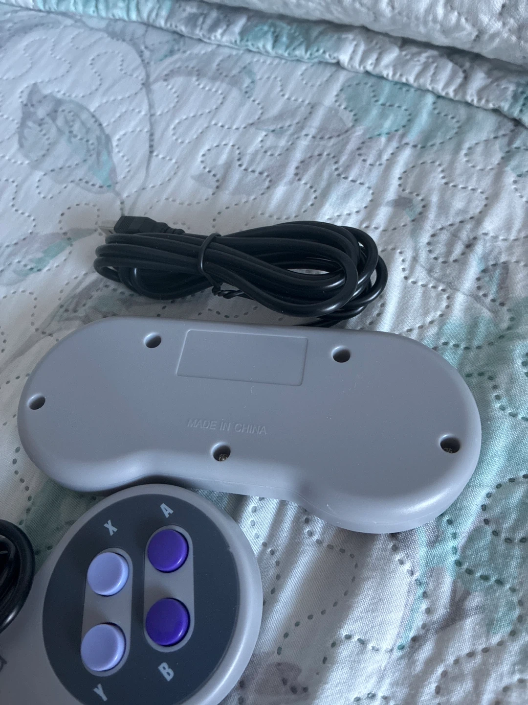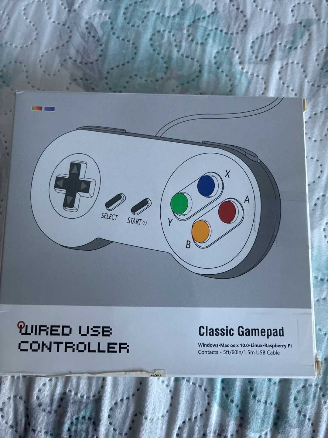 This is a pair of wired USB controllers from Kiwitata. They're compatible with Windows, Mac OS, Linux, and Raspberry Pi. Each controller has a 5ft/60in USB cable.