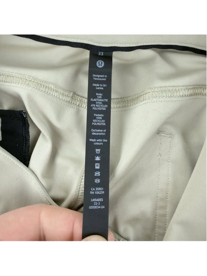 Lululemon Men's Size 33 W X 31 L ABC Classic Fit 5 Pocket Pant Warpstreme M5ADES in good pre owned condition as shown in the photos with no flaws.