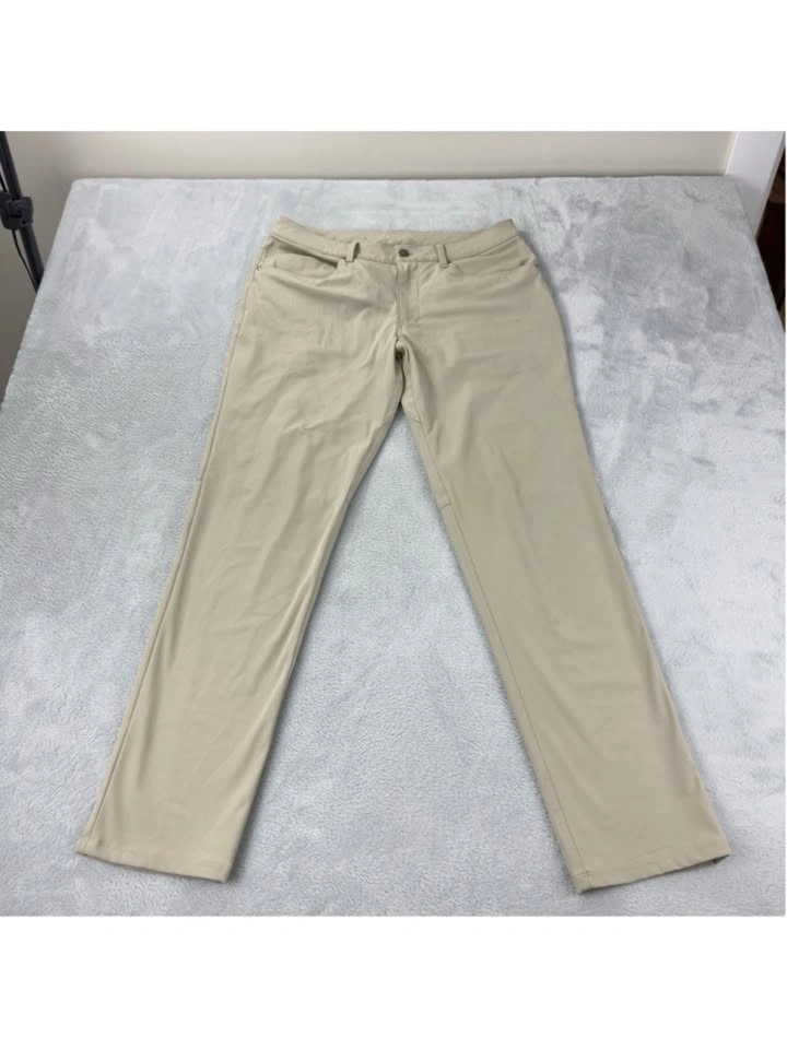 Lululemon Men's Size 33 W X 31 L ABC Classic Fit 5 Pocket Pant Warpstreme M5ADES in good pre owned condition as shown in the photos with no flaws.