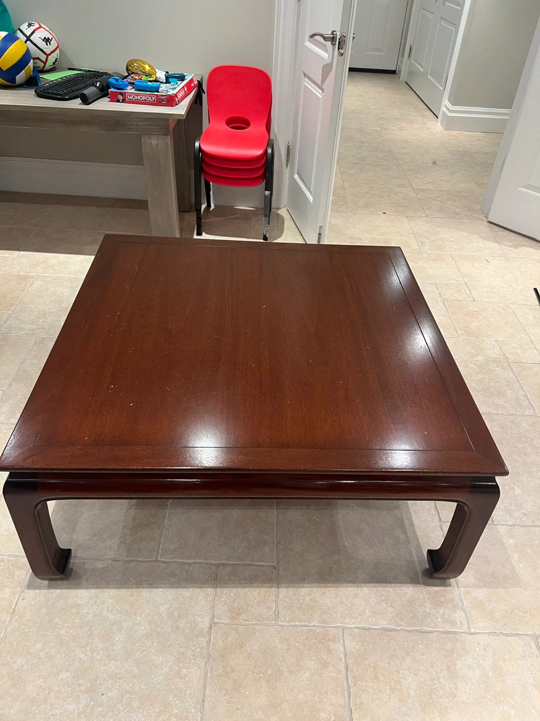 A lovely wooden square coffee table, perfect for any living room! It's in great condition and ready for a new home