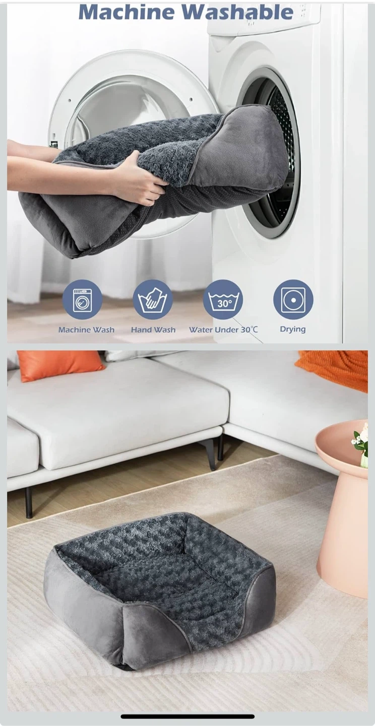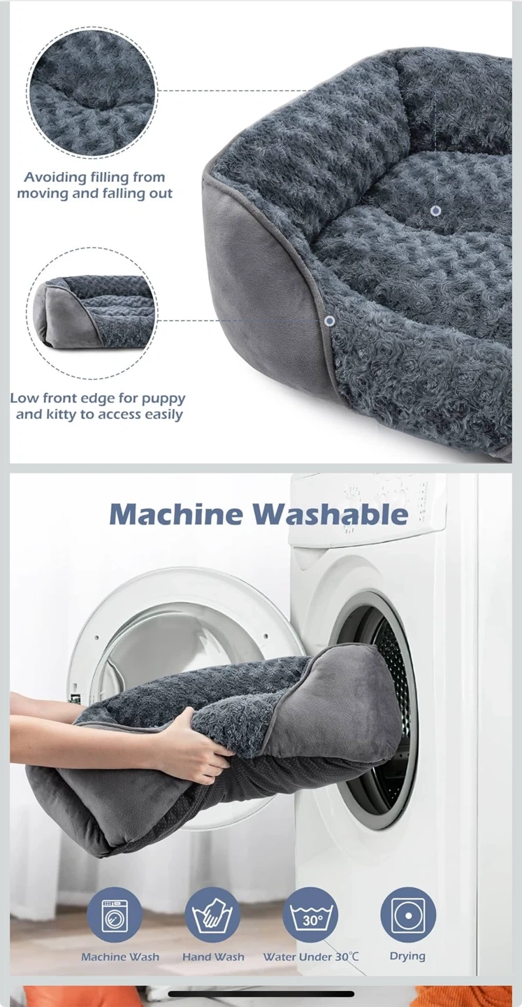 This pet bed features rose swirl short faux fur and cozy suede fabric. It has an anti-slip bottom and a low front edge for easy access. Machine washable for convenience!