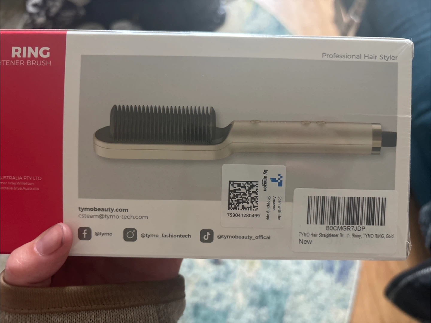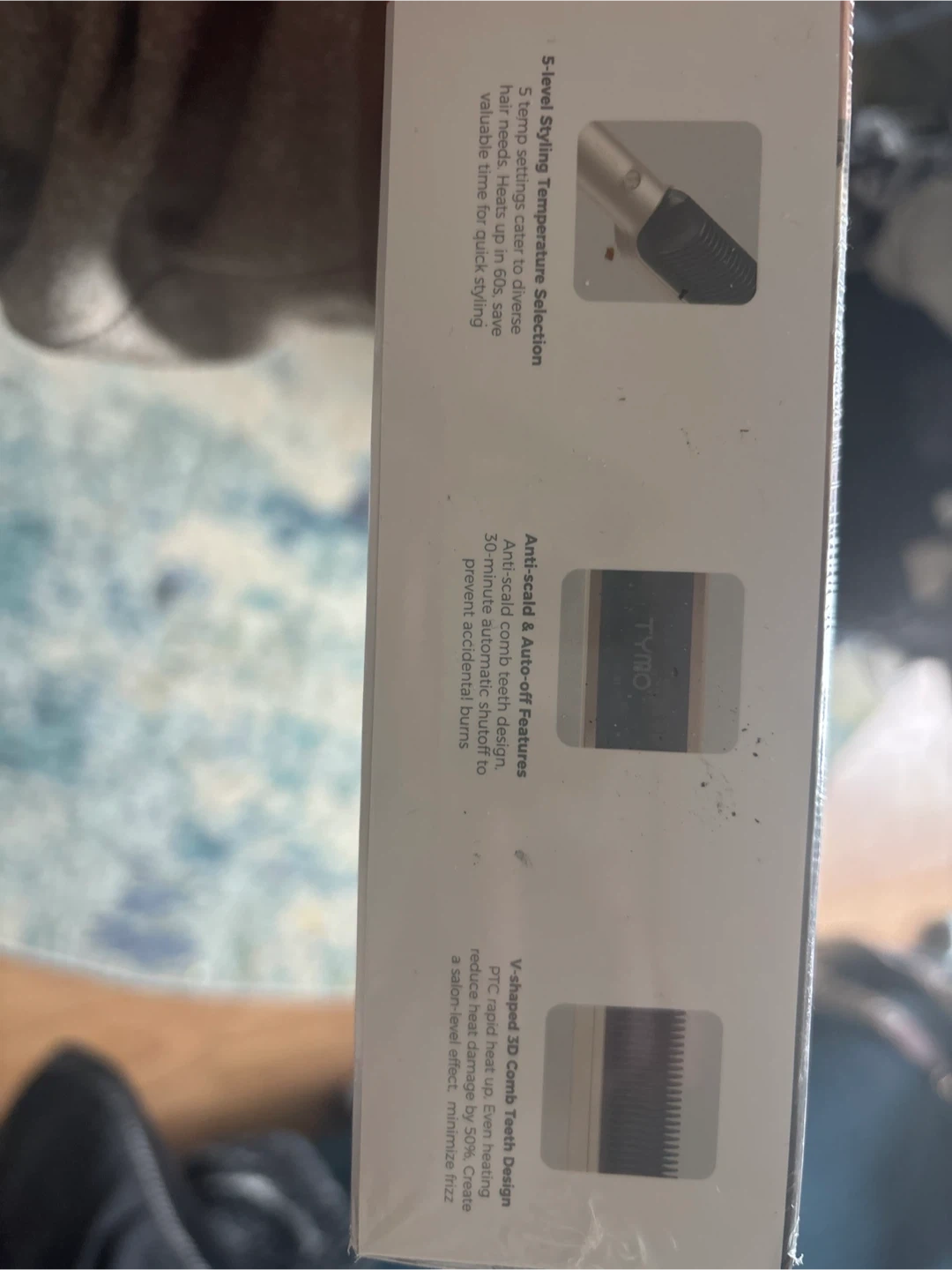 TYMO Professional Hair Styler, RING model. It's a 5-level styling temperature selection and features anti-scald & auto-off capabilities. The V-shaped 3D comb teeth design minimizes frizz.