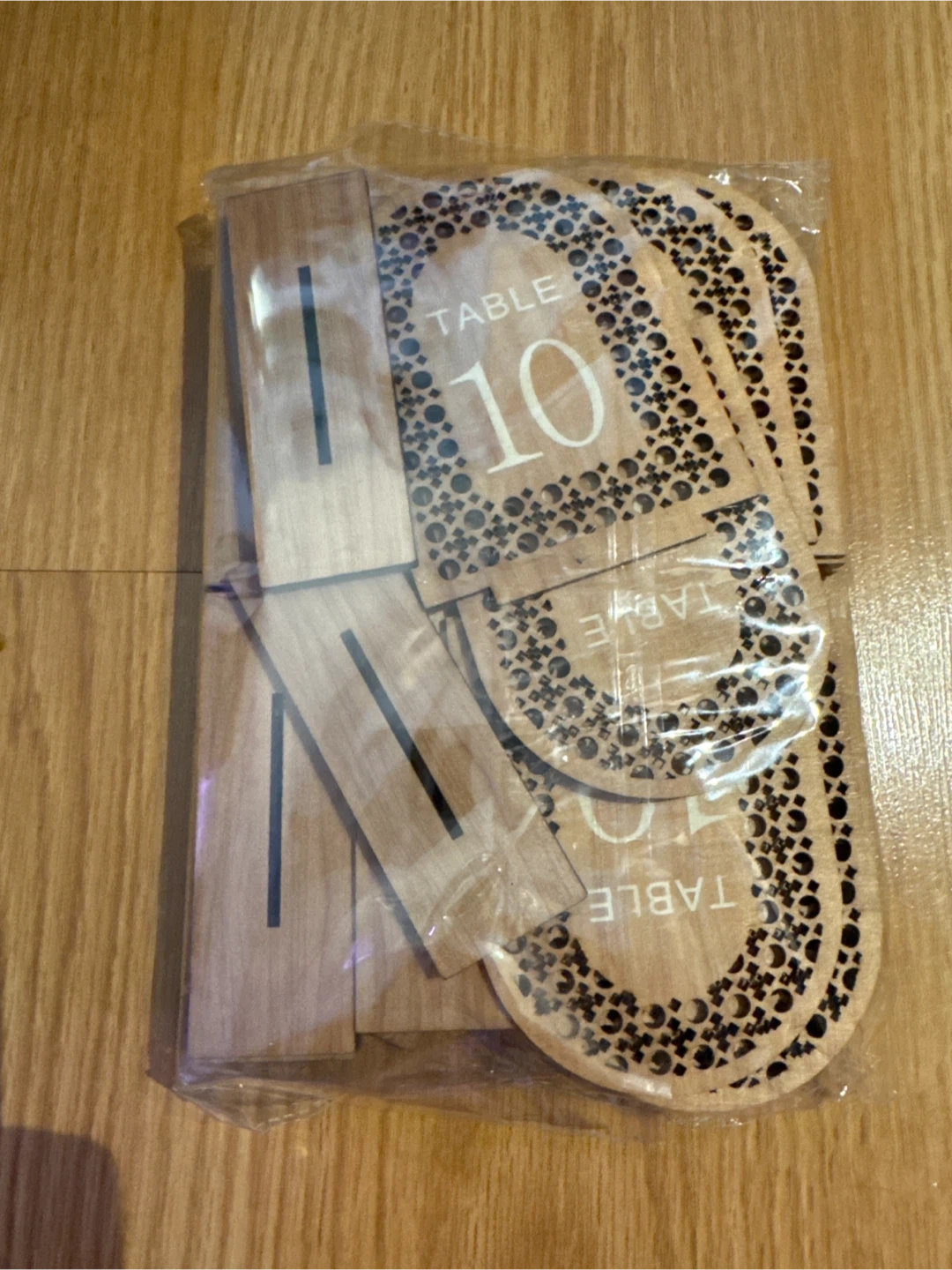 Buy & SellWooden Table Number Signs (Set of 20)Wooden Table Number Signs (Set of 20)$5This is a set of 20 wooden table number signs. Made of wood, stained and printed on one side only.ConditionNewWHERE TO MEETNear High Park subway stationView MapSELLERverifiedMikeHigh Park North1245 reviews0 chats·0 favorites·2 viewsSEND CHAT TO SELLERHi Mike! I’m interested in your listing.Hi Mike! I’m interested in your listing.Get the Karrot app to chatSign In to chat