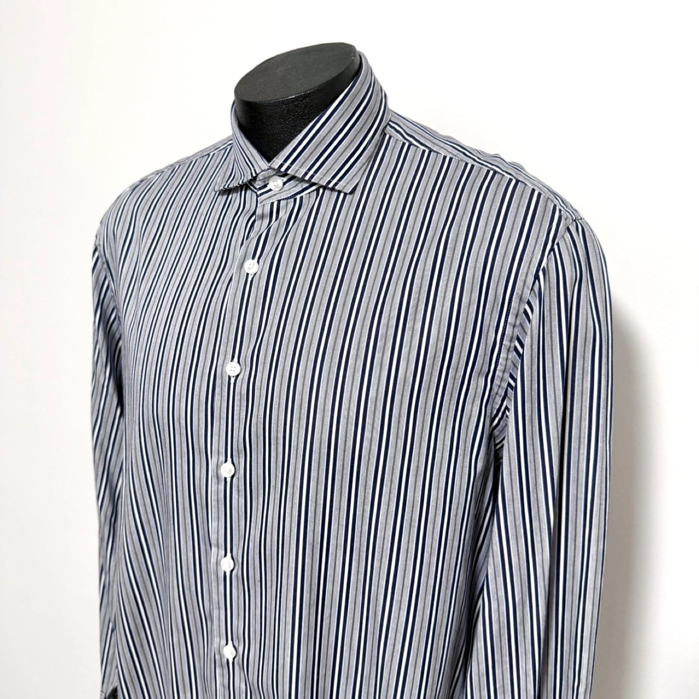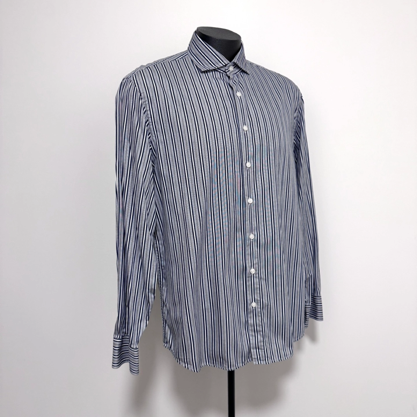 Men’s Britches grey/black/white striped collared shirt in size Large. In clean, like-new condition