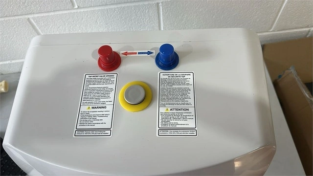 Brand new in the box, fully working and complete. This point-of-use 6.5-gallon mini tank water heater provides instant hot water where you need it with fast recovery. Thermal efficiency is up to 99%. Easy installation with a compact design that can be wall or floor mounted under a sink or counter. It requires hard wiring with a nominal current of 12amps. Features adjustable temperature settings from 50°F to 149°F with high-temperature limit protection and a freeze mode. Premium quality with a glass-lined tank for great insulation. Includes a temperature and pressure relief valve and is UL Listed. Dimensions: 17.7"H x 17.7"W x 14.6"D; Weight: 26.5 lbs; Water connections: 1/2" NPT; Electrical requirements: 1.44 kW at 120 volts (must be hard-wired); Max water pressure: 150PSI. Pickup is near Kipling and Evans.