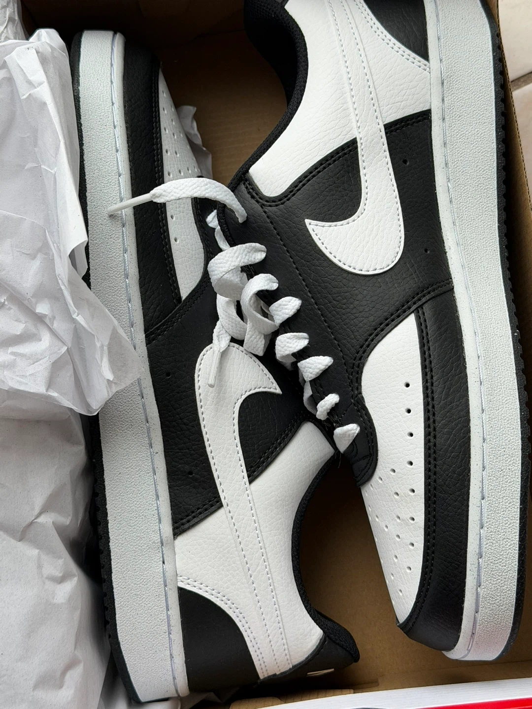 Brand new Nike Court Vision Low sneakers in a classic black and white colourway. These shoes feature a durable leather and synthetic upper with a rubber sole for traction. They're perfect for everyday wear and casual outings! Includes original box.