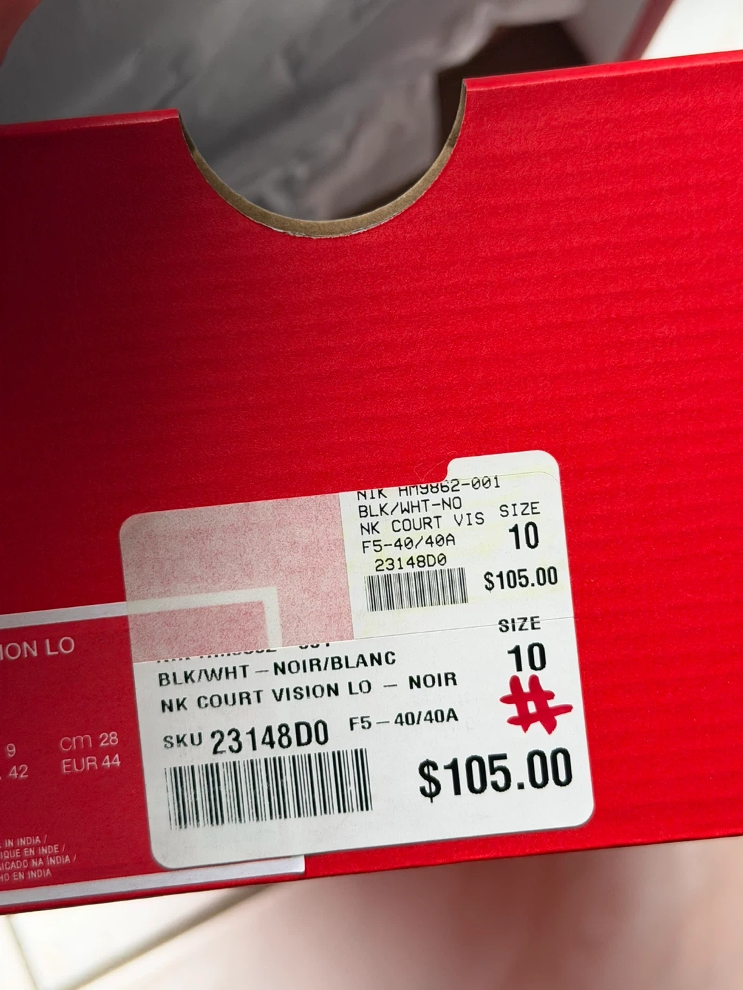 Nike Court Vision Low Men's Sneakers Black and White Size 10