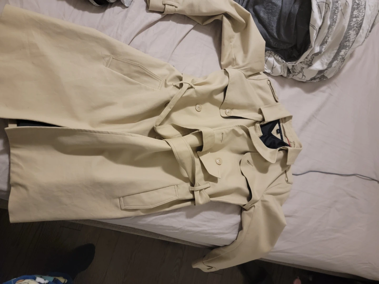 Selling a Tommy Hilfiger trench coat in a lovely beige colour. It's in great condition and ready to wear! Perfect for those cooler days.
