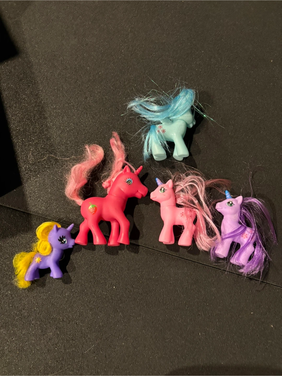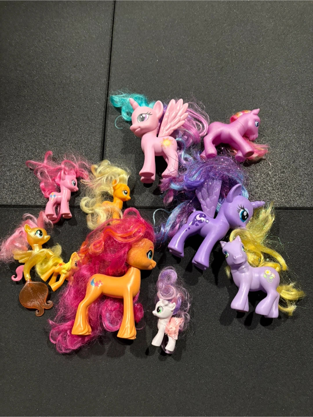 A collection of assorted My Little Pony figures with vibrant, brushable hair. Includes various characters and colours for imaginative play. These small toys are great for kids who love collecting and storytelling!