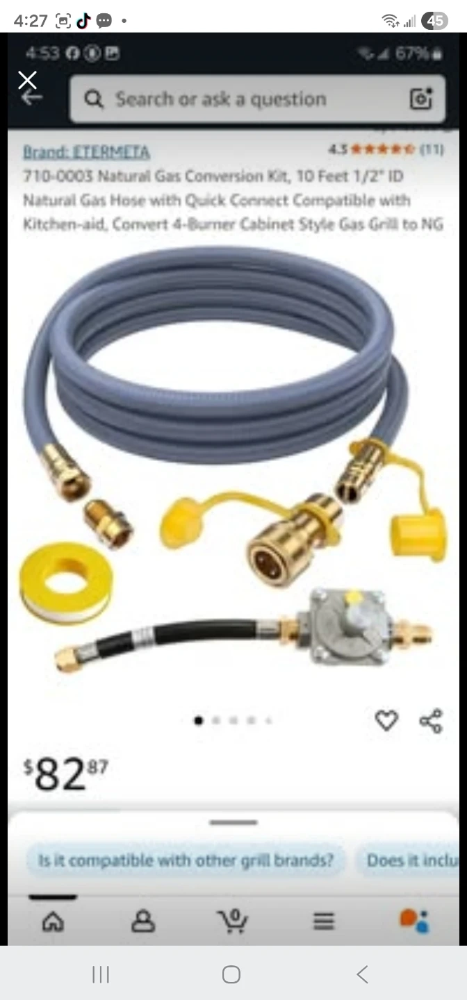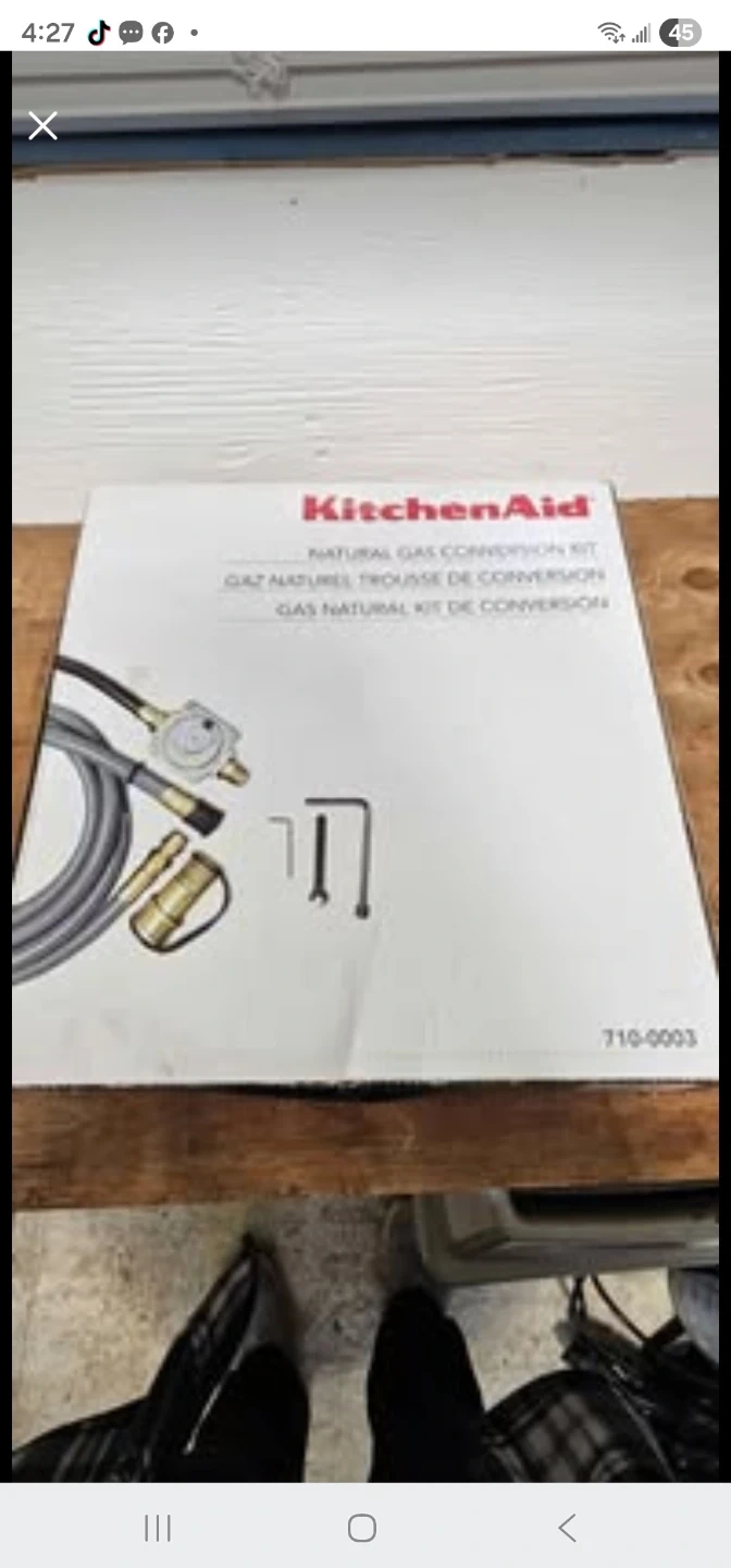 This is a KitchenAid natural gas conversion kit. It's for converting a cabinet style gas grill to NG. The kit includes a 10-foot hose with a 1/2" ID and quick connect fitting.