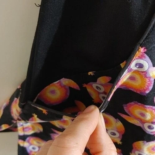 EUC White Cross Owls pattern Pediatric nurse scrubs top uniform shirtShort sleeve Black and orange mostly Pattern part 100 % cotton Black part stretchyTwo pockets Approx measurements Pit to pit 19 inBack length 25 in