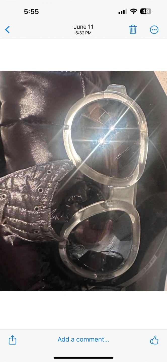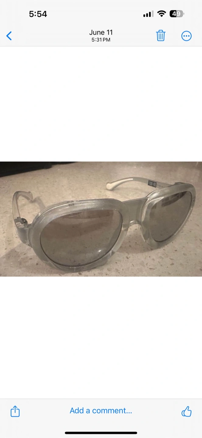 Clear frame sunglasses. Model number ML 0090. Unique design. Excellent condition.