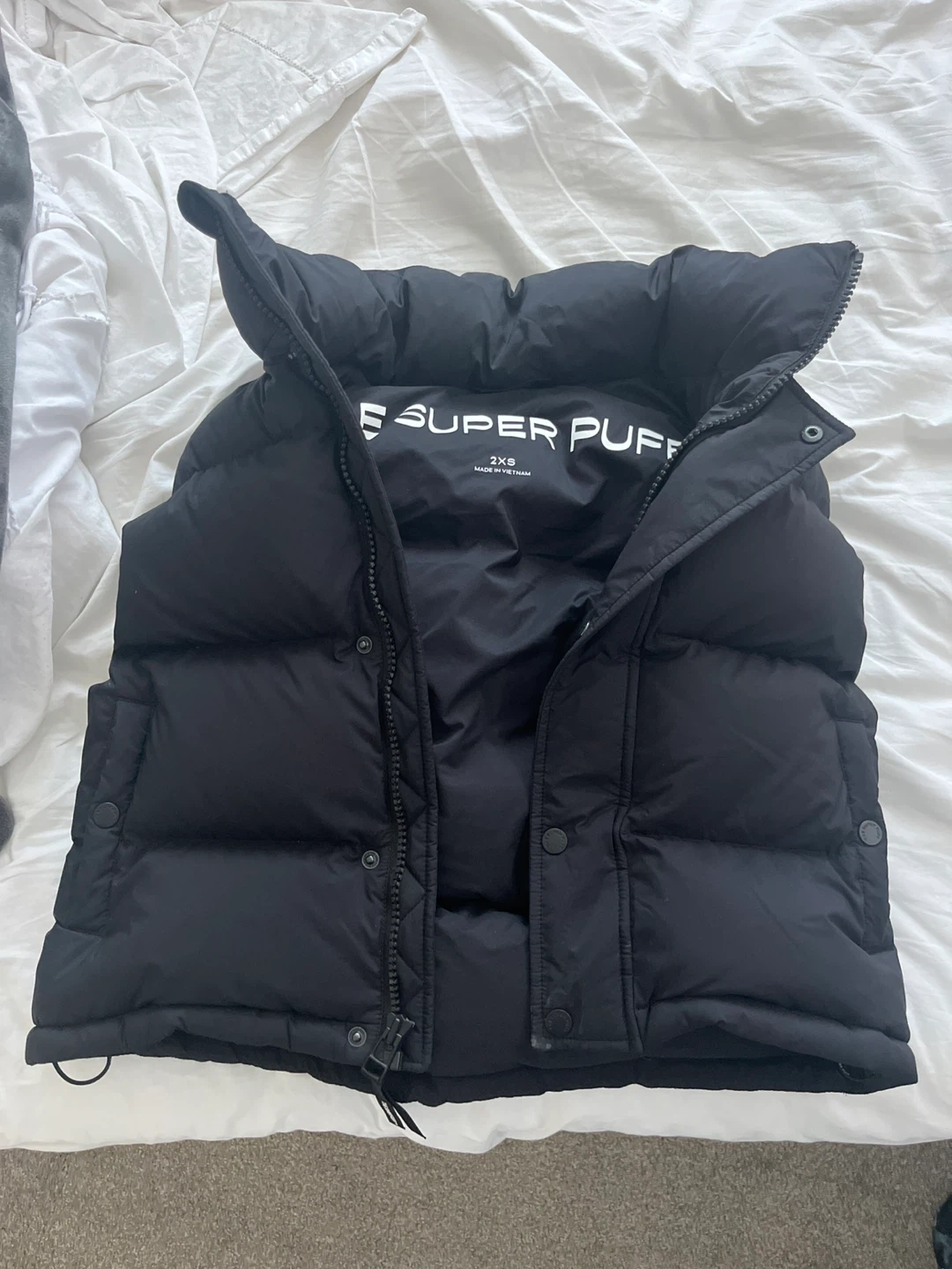 Buy & SellSuper Puff Black Puffer Vest 2XSSuper Puff Black Puffer Vest 2XS$199Black puffer vest by Super Puff. Size 2XS. (Comes with hood, hood can be detachable)ConditionNewSize2xsBrandSuper PuffWHERE TO MEETCheck LocationView MapSELLERKendrieOakmont50 reviews0 chats·0 favorites·6 viewsSEND CHAT TO SELLERHi Kendrie! I’m interested in your listing.Hi Kendrie! I’m interested in your listing.Get the Karrot app to chatSign In to chat