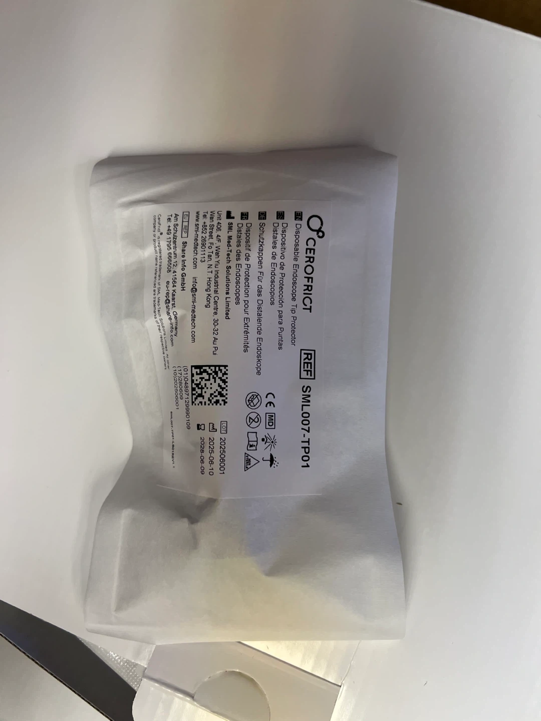 Protect your endoscope tips during storage and transportation with these disposable protectors. This package contains 300 units. Use before 2028-06-09