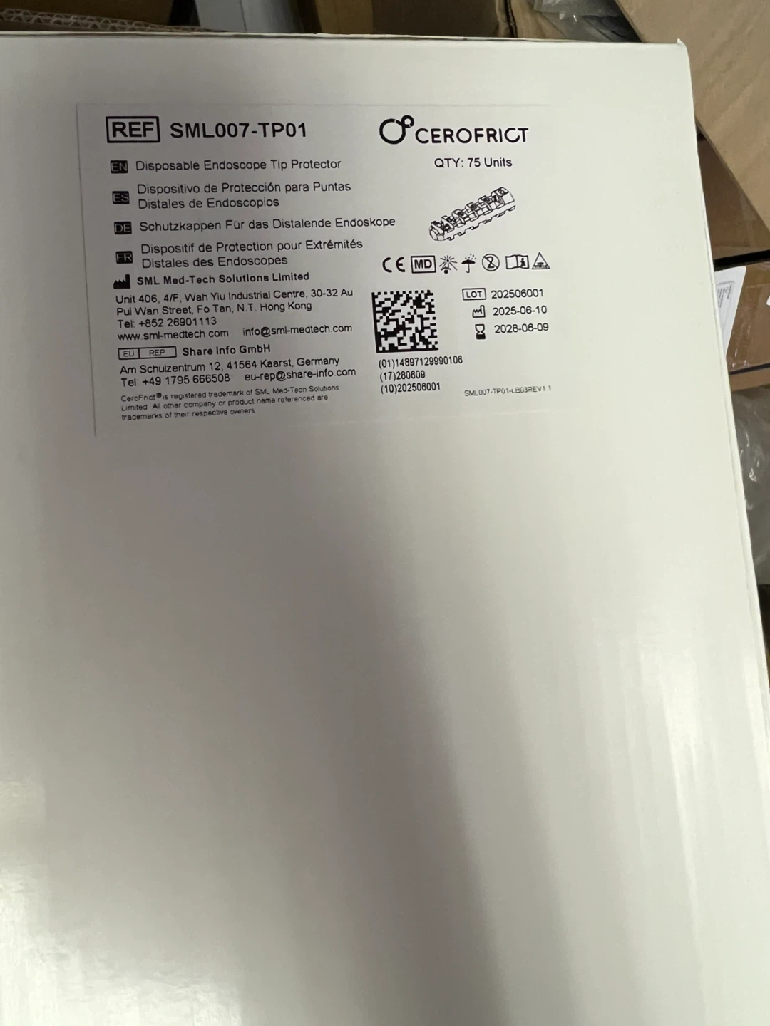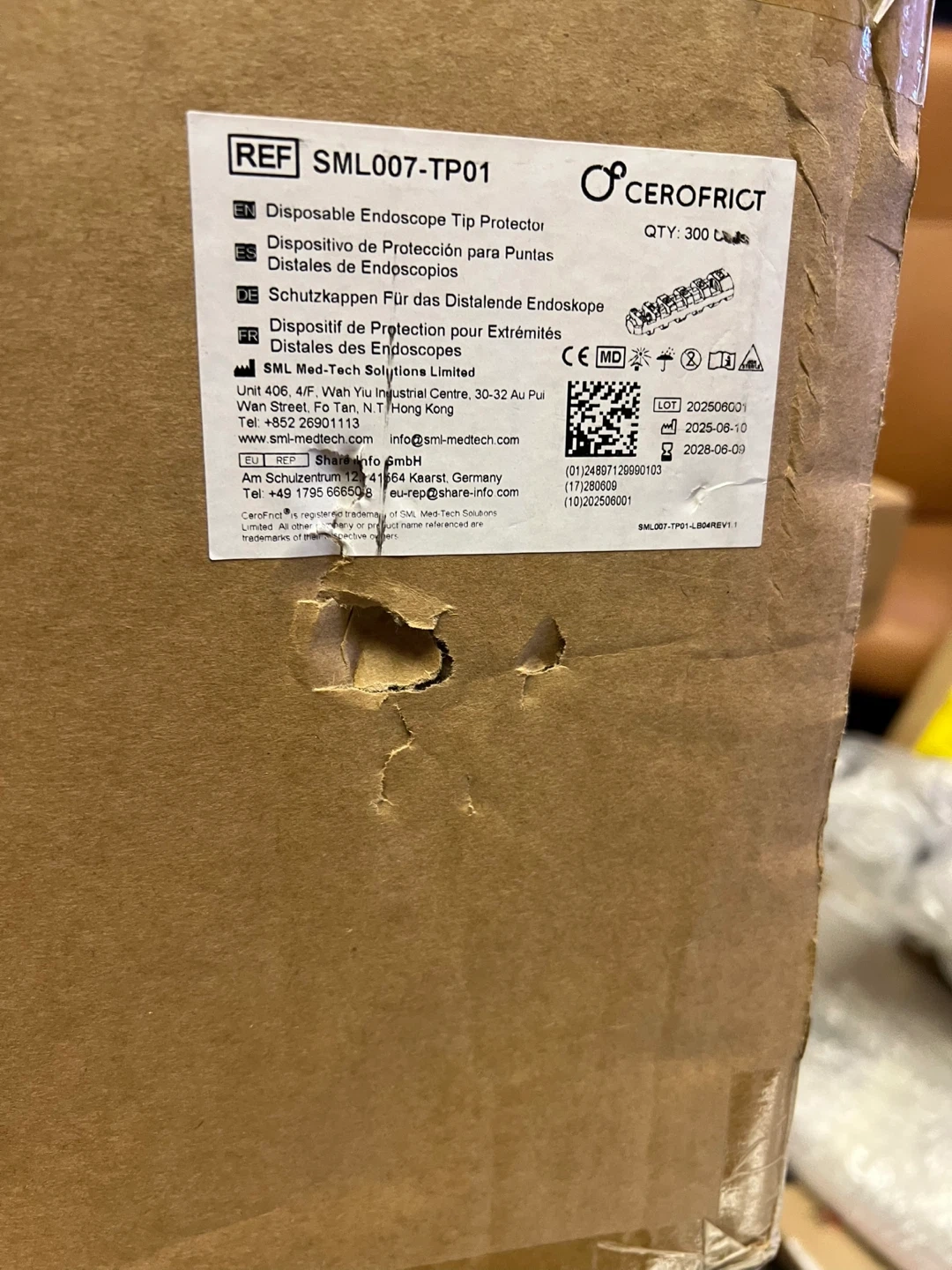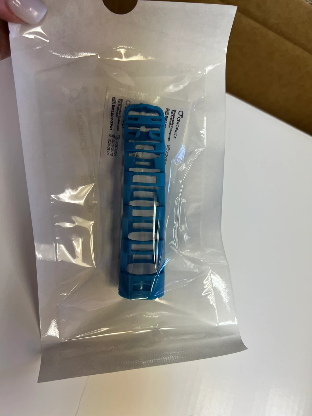 Protect your endoscope tips during storage and transportation with these disposable protectors. This package contains 300 units. Use before 2028-06-09