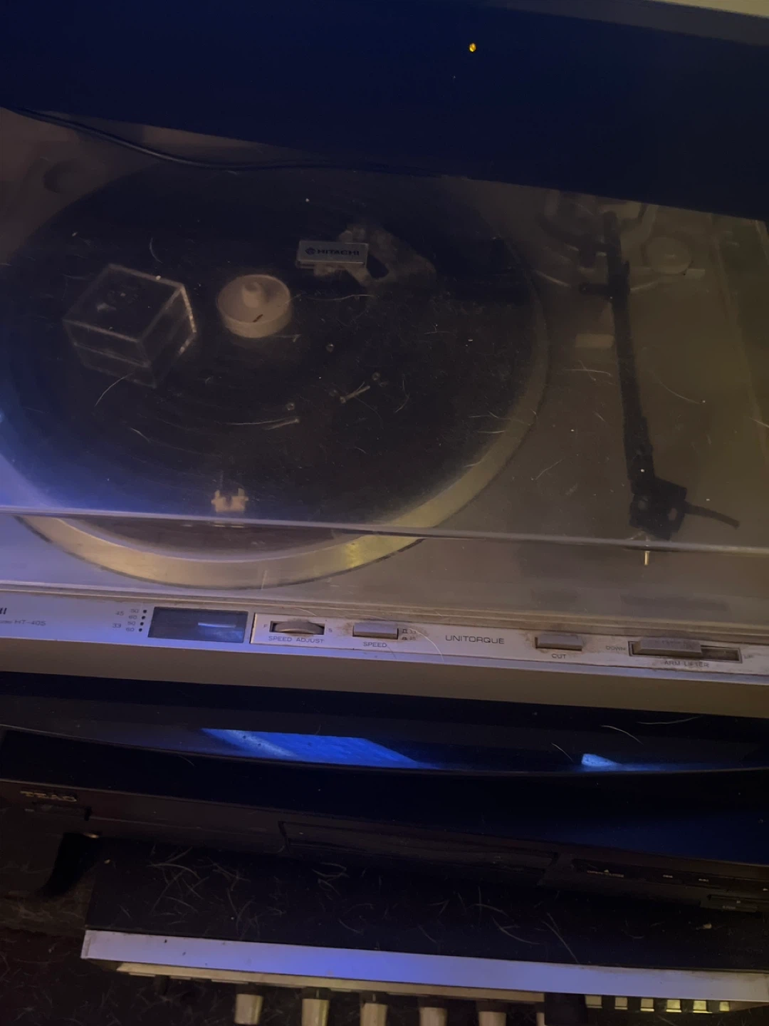 Selling a Hitachi HT-40S turntable. It shows some signs of use, but is still functional. Great for vinyl enthusiasts!
