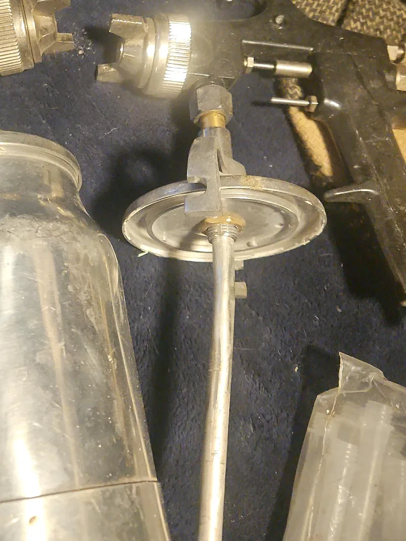 This is a paint sprayer with a large metal cup. It features adjustable spray patterns for various applications. The metal construction ensures durability. It's great for DIY projects or professional use.