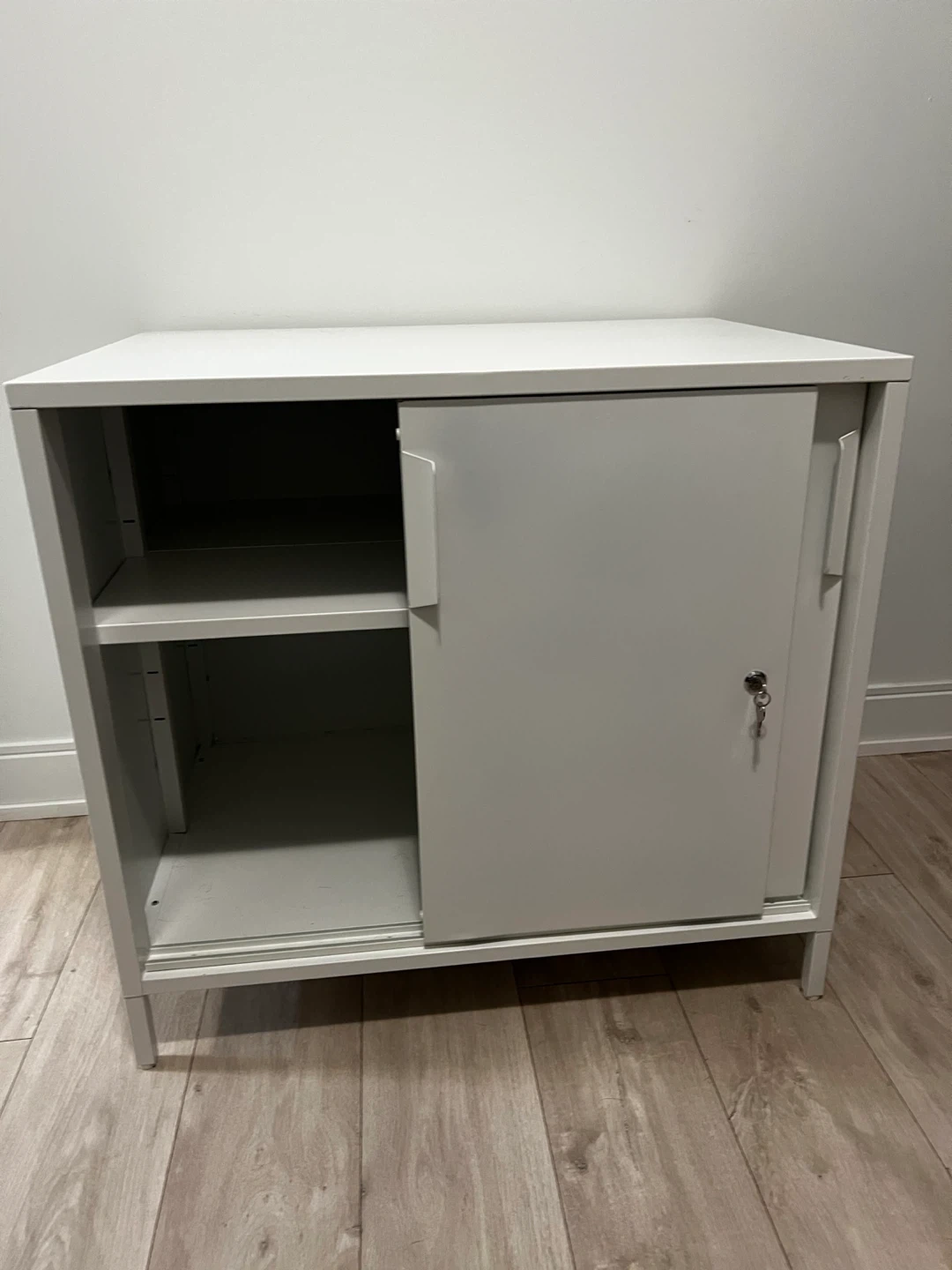 Selling an IKEA TROTTEN cabinet in white — a sleek, modern storage unit that’s perfect for home offices, condos, or small spaces. Great for books, files, electronics, or general storage, with a lockable door for added security.