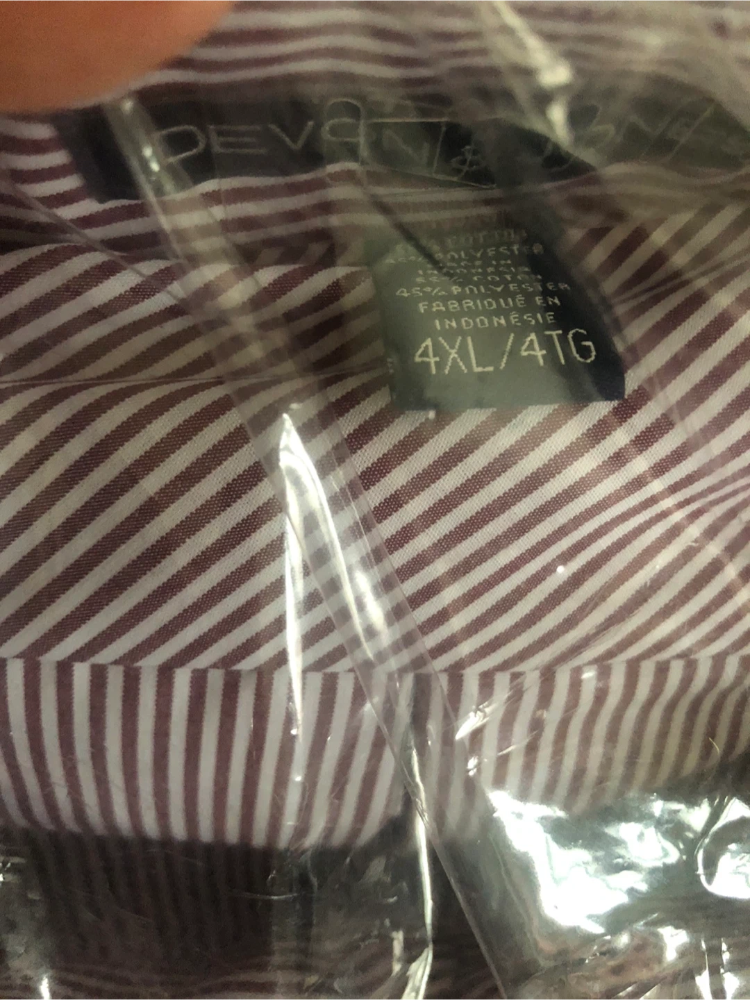 A SEVEN JONES men's button-down shirt in size 4XL. It's made with 55% cotton and 45% polyester. This shirt features a classic striped pattern.
