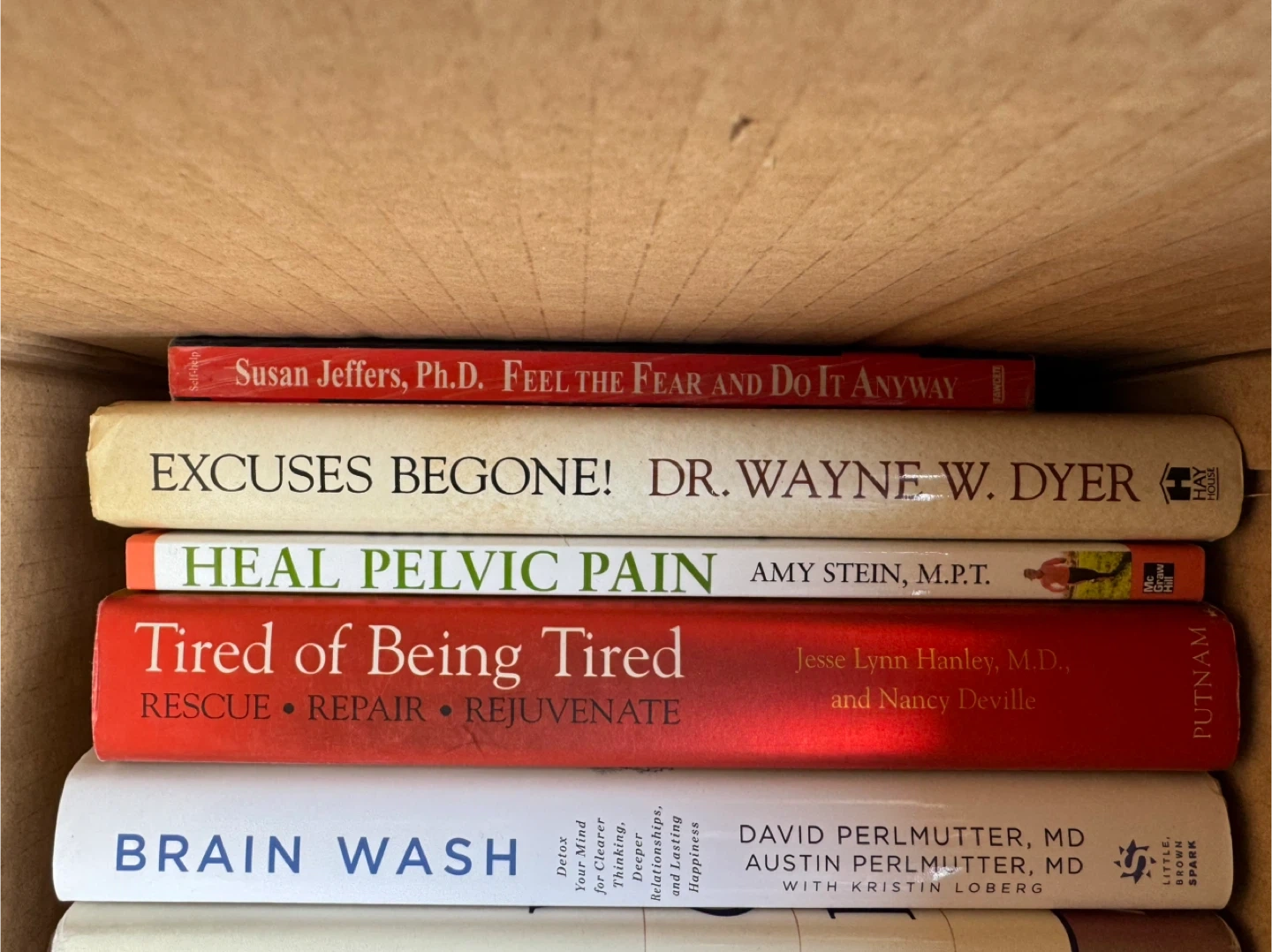 Collection of self-help and health-related books. Titles include "Feel the Fear and Do It Anyway", "Excuses Begone!", "Heal Pelvic Pain", "Tired of Being Tired", "Brain Wash", "8 Weeks to Optimum Health", "The Essential Guide to Nutrition for a Healthy Body", "The Turning Point", "Are You Tired and Wired?", "Healthy Heart Miracle Diet", "Accelerated Learning for the 21st Century", "The Story Hour", "Guideposts for Growing Up", "Questions Children Ask", and "The Body/Body Problem". $15 each or take all 15 for $180. Located in Penticton