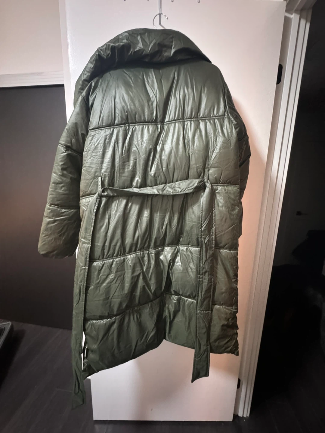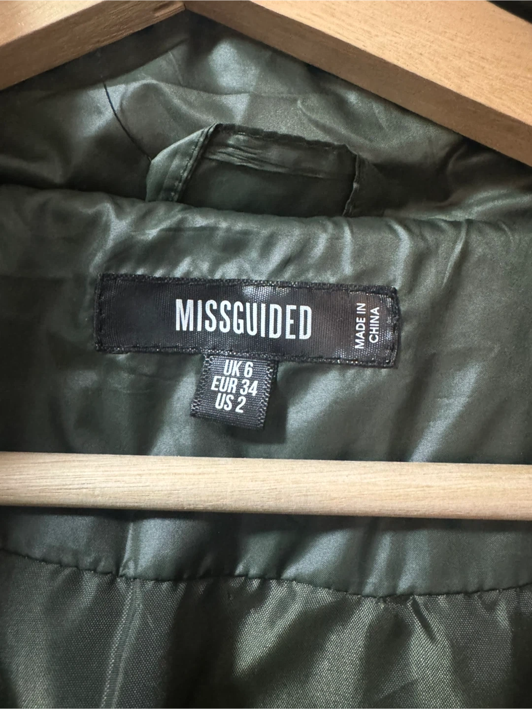 Selling a Missguided puffer coat in great condition! It's a size US 2. This stylish coat is perfect for staying warm and fashionable during the colder months. The khaki green colour is really versatile. It also has a tie around the waist!