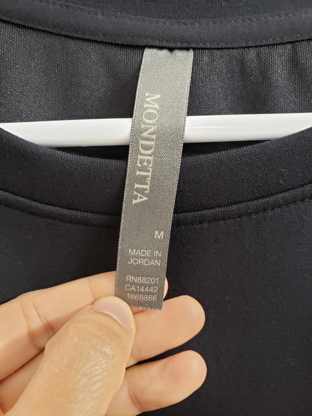 This Mondetta crew neck sweatshirt is black and size medium. It's made in Jordan. It's a comfortable and simple addition to your wardrobe.like new.Actual color is black not faded.