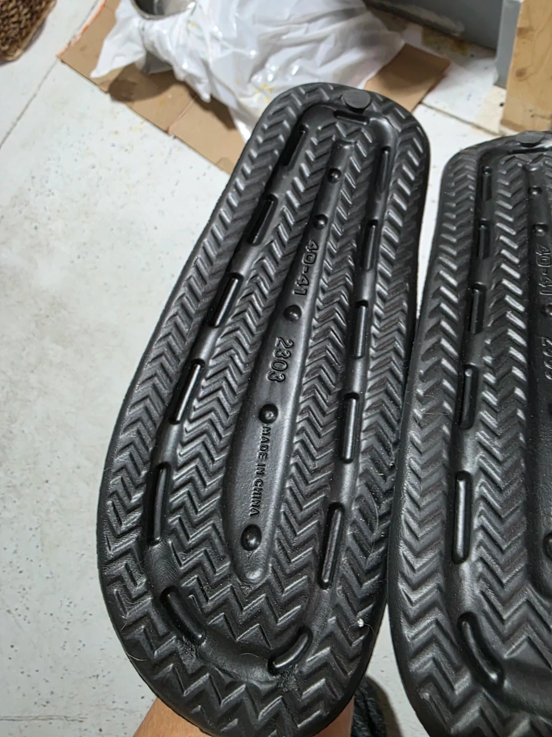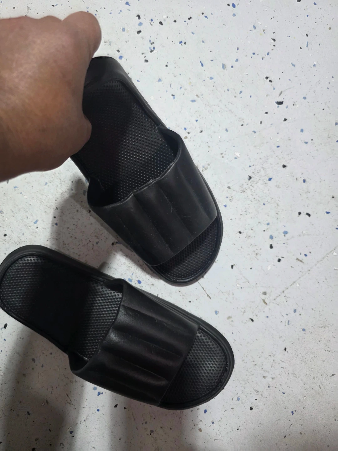 Black slides perfect for everyday wear. These slides are made of a durable synthetic material and feature a comfortable footbed. Size is 40-41.