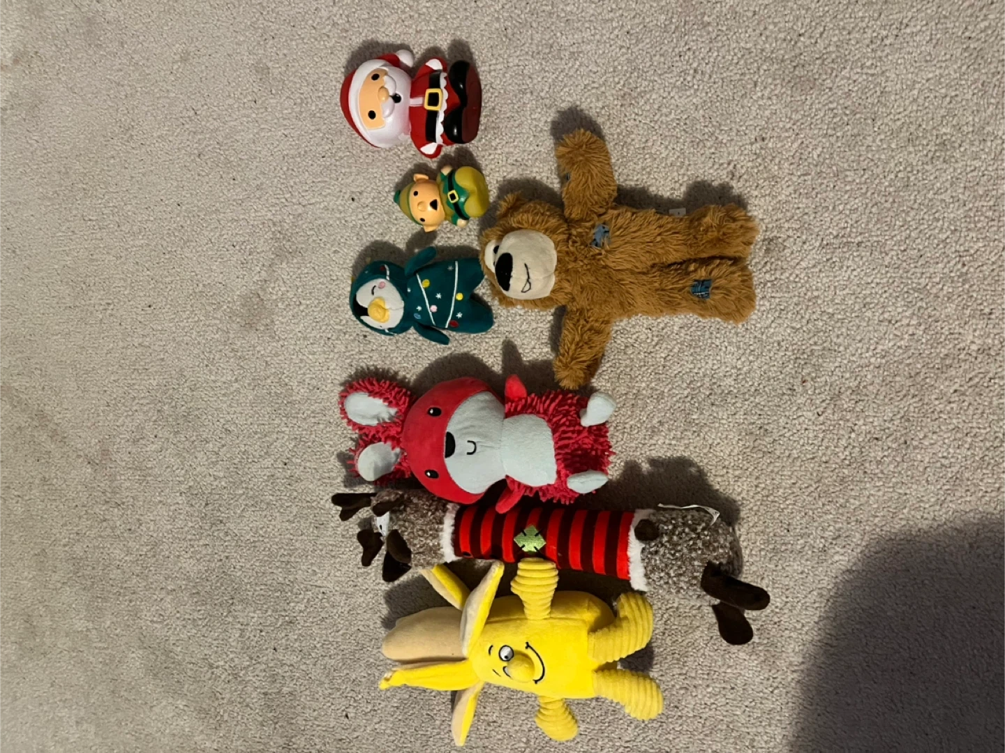 Buy & SellSet of 7 dog toysSet of 7 dog toys$5This set includes 7 dog toys. You'll find Santa, an elf, a penguin, a bear, a reindeer, a banana and a pink rabbit. Lightly used.ConditionLike newWHERE TO MEETPet ValuView MapSELLERSNatSavoline100 reviews0 chats·0 favorites·6 viewsSEND CHAT TO SELLERHi SNat! I’m interested in your listing.Hi SNat! I’m interested in your listing.Get the Karrot app to chatSign In to chat