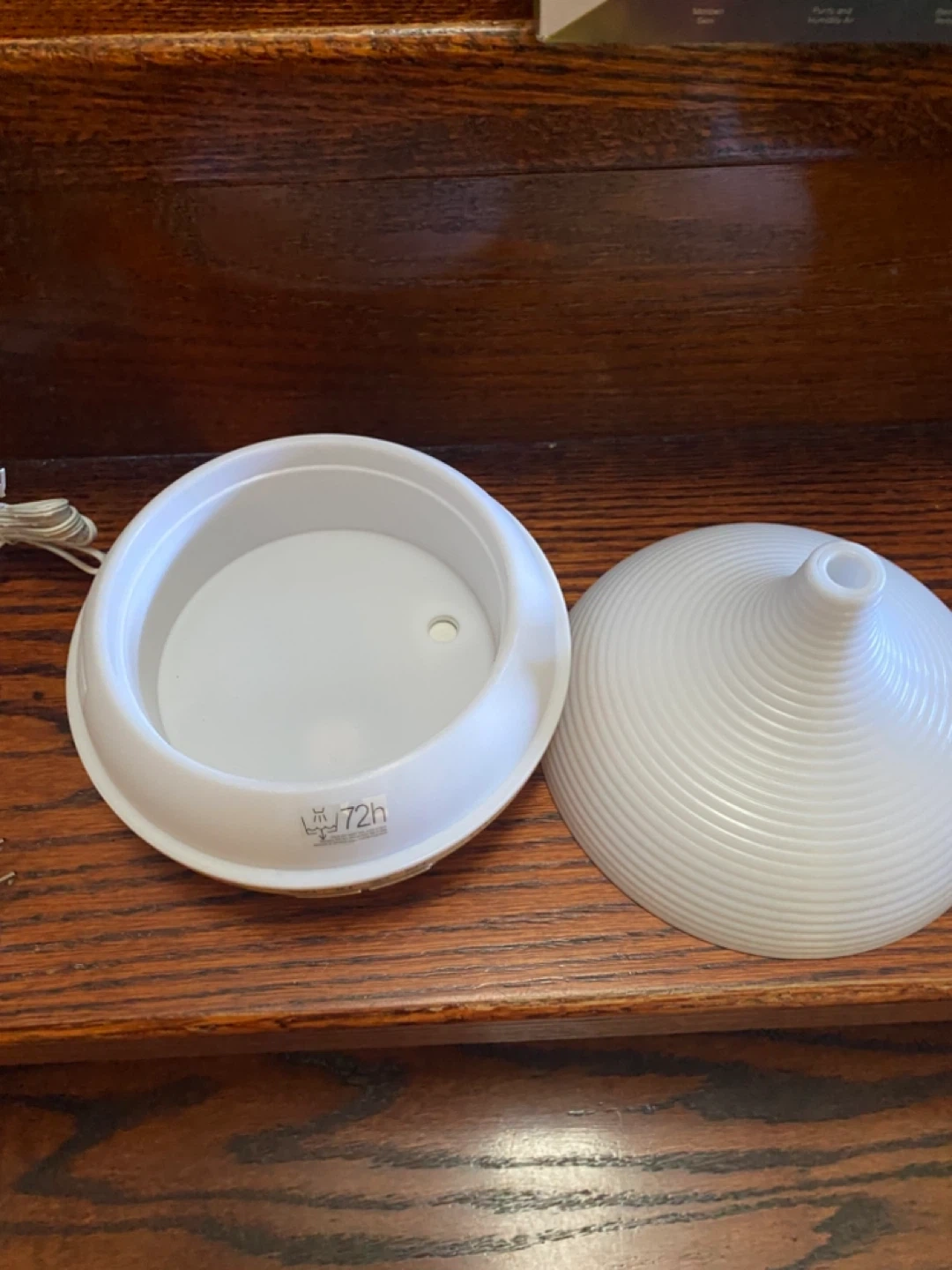 This ASAZUKI essential oil diffuser has adjustable timer settings and comes with a power adapter. It's designed to humidify and fragrance your home. The unit features multiple timer options for convenience.