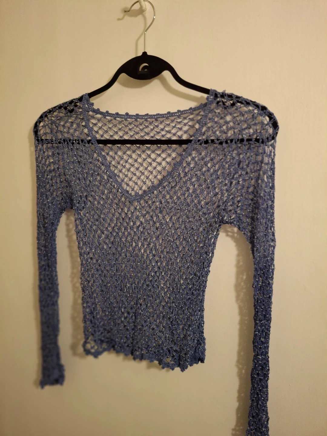 Twinkle in periwinkle! Crochet Long Sleeve mesh overtop, XS