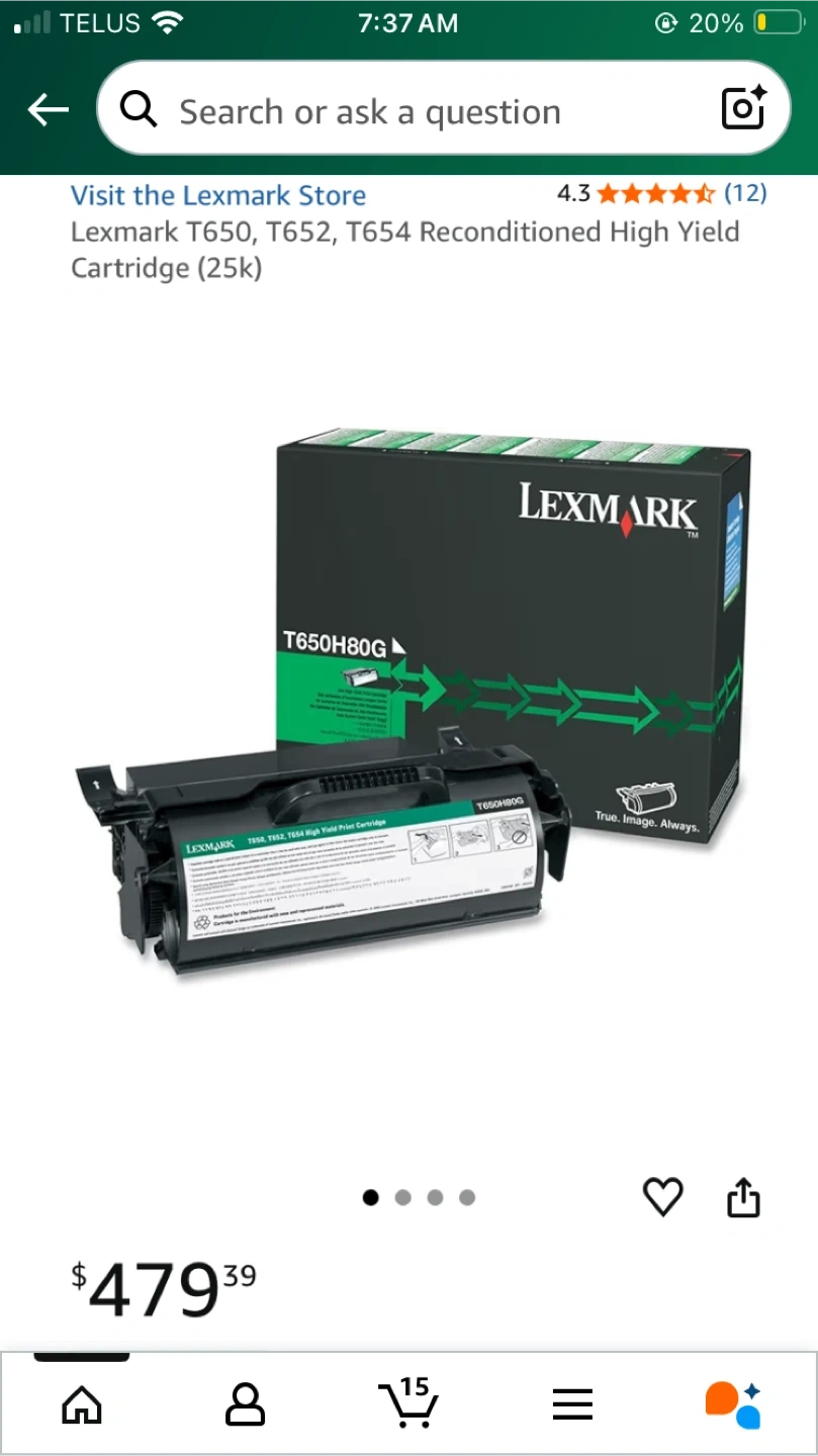 Buy & SellLexmark High Yield Print Cartridge T650, T652, T654, T656Lexmark High Yield Print Cartridge T650, T652, T654, T656$180Have 2 available (Brand new) 💰$180 each 📍Located in Millet-Nisku area 🚚 Can meet half way or arrange deliveryConditionNewBrandLexmarkWHERE TO MEETCheck LocationView MapSELLERverifiedKalebDeer Valley1105 reviews0 chats·0 favorites·22 viewsSEND CHAT TO SELLERHi Kaleb! I’m interested in your listing.Hi Kaleb! I’m interested in your listing.Get the Karrot app to chatSign In to chat