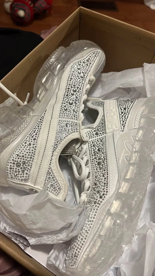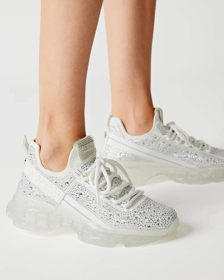 Sparkly Steve Madden Maxima sneakers up for grabs. These white kicks have tons of rhinestones all over, super blingy! Clear chunky sole is cool too. New in original box, SIZE 7 and 8 available.
