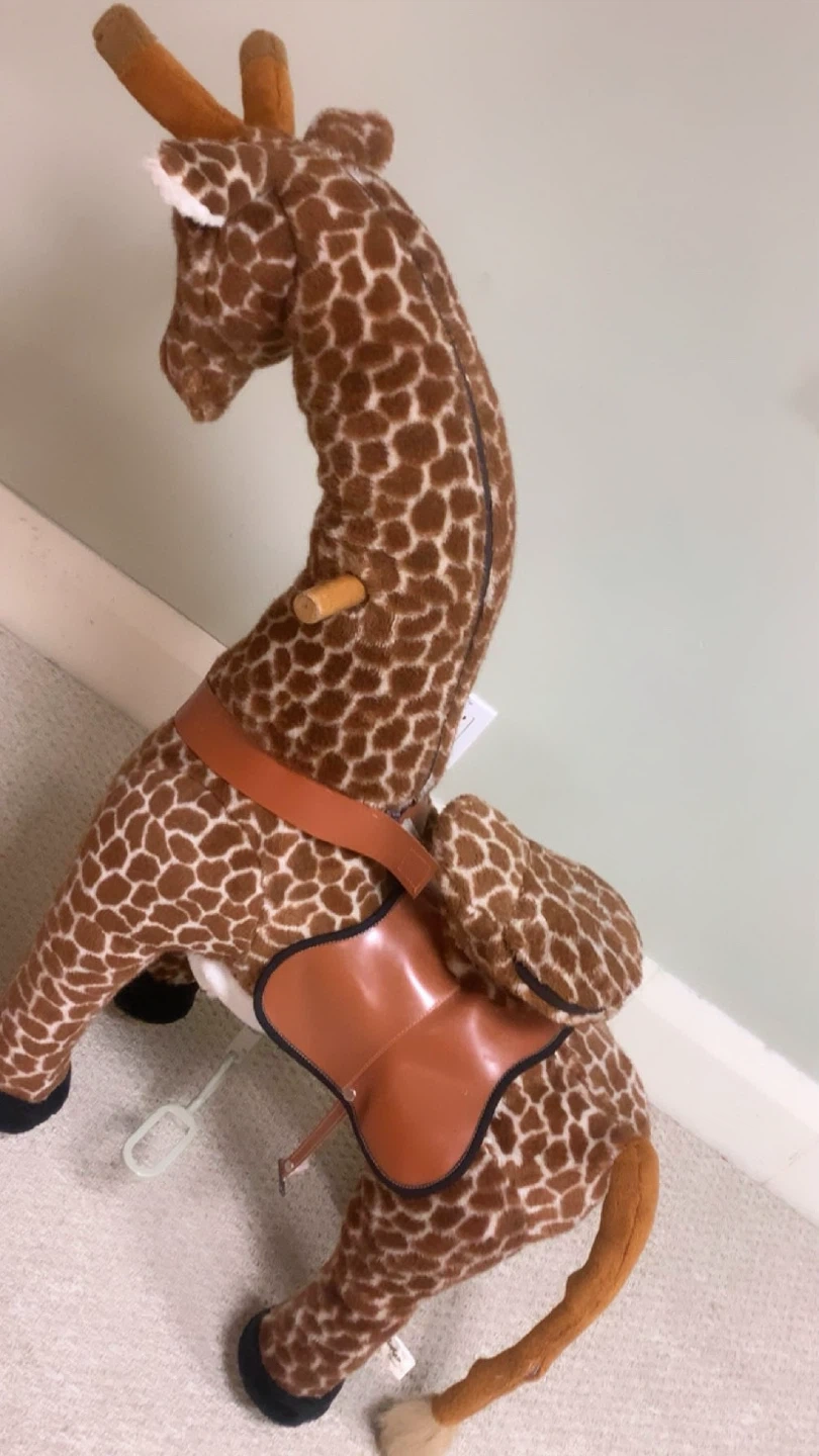 A cute giraffe rocking animal for your little one! It's in great condition and ready for a new home. The plush material is soft and cuddly, and the saddle adds a touch of fun